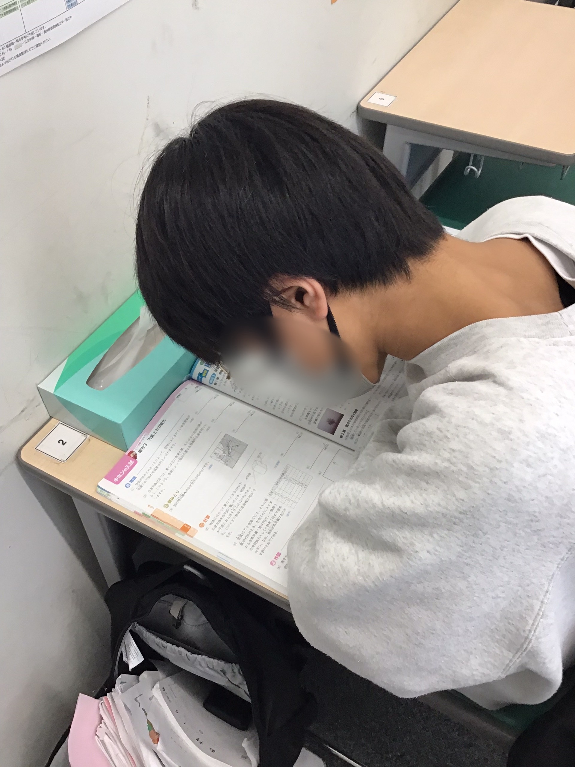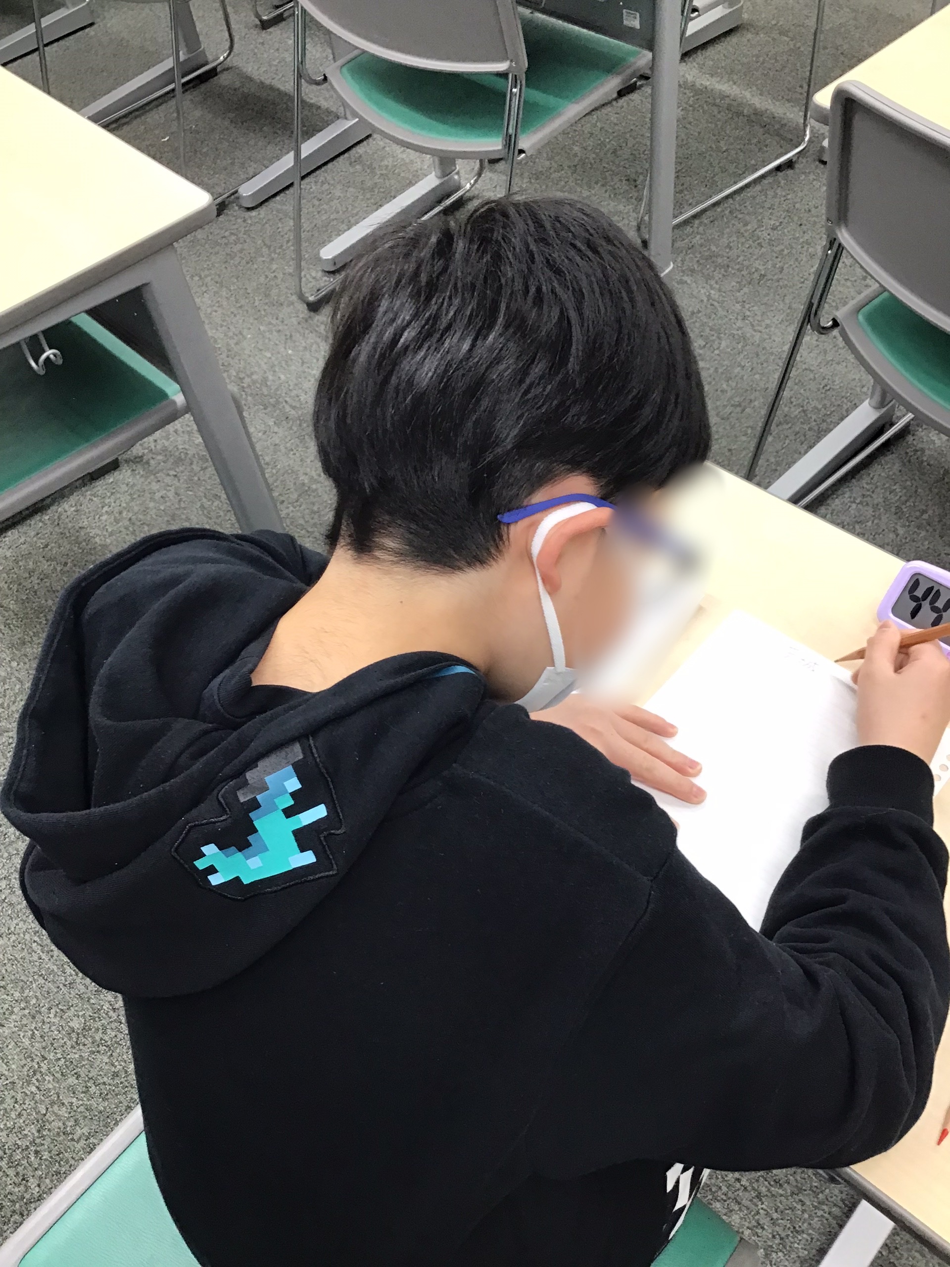 こちらは新中3。昨日の宿題や学校の宿題を進めています。