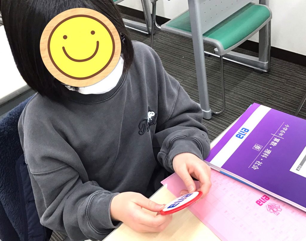 ピカピカのテキストと一緒に、小学生にはenaバッチもお渡ししています。