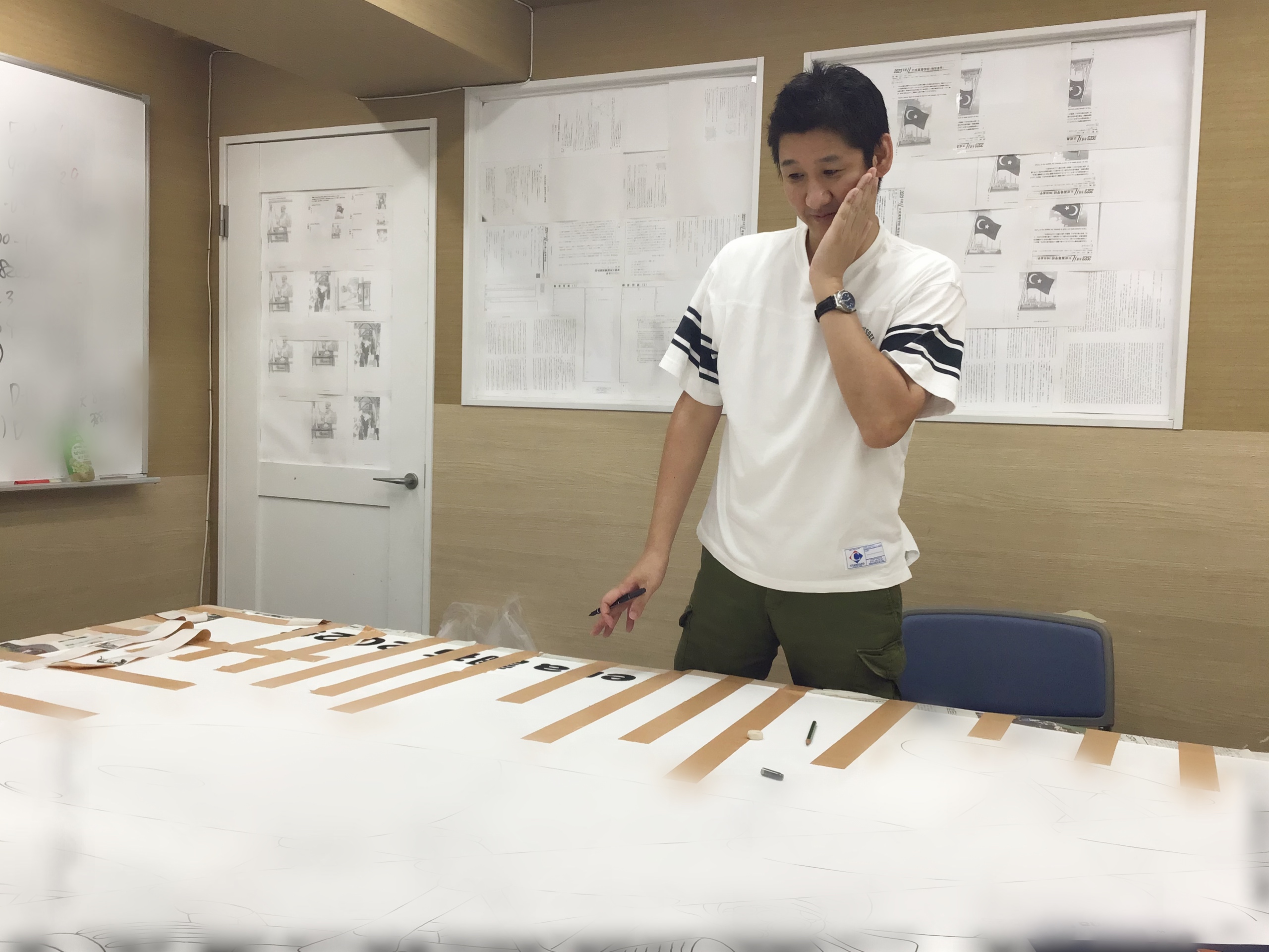 栗﨑先生も頭を抱えながらどの部分から書き始めるかを熟考しています。