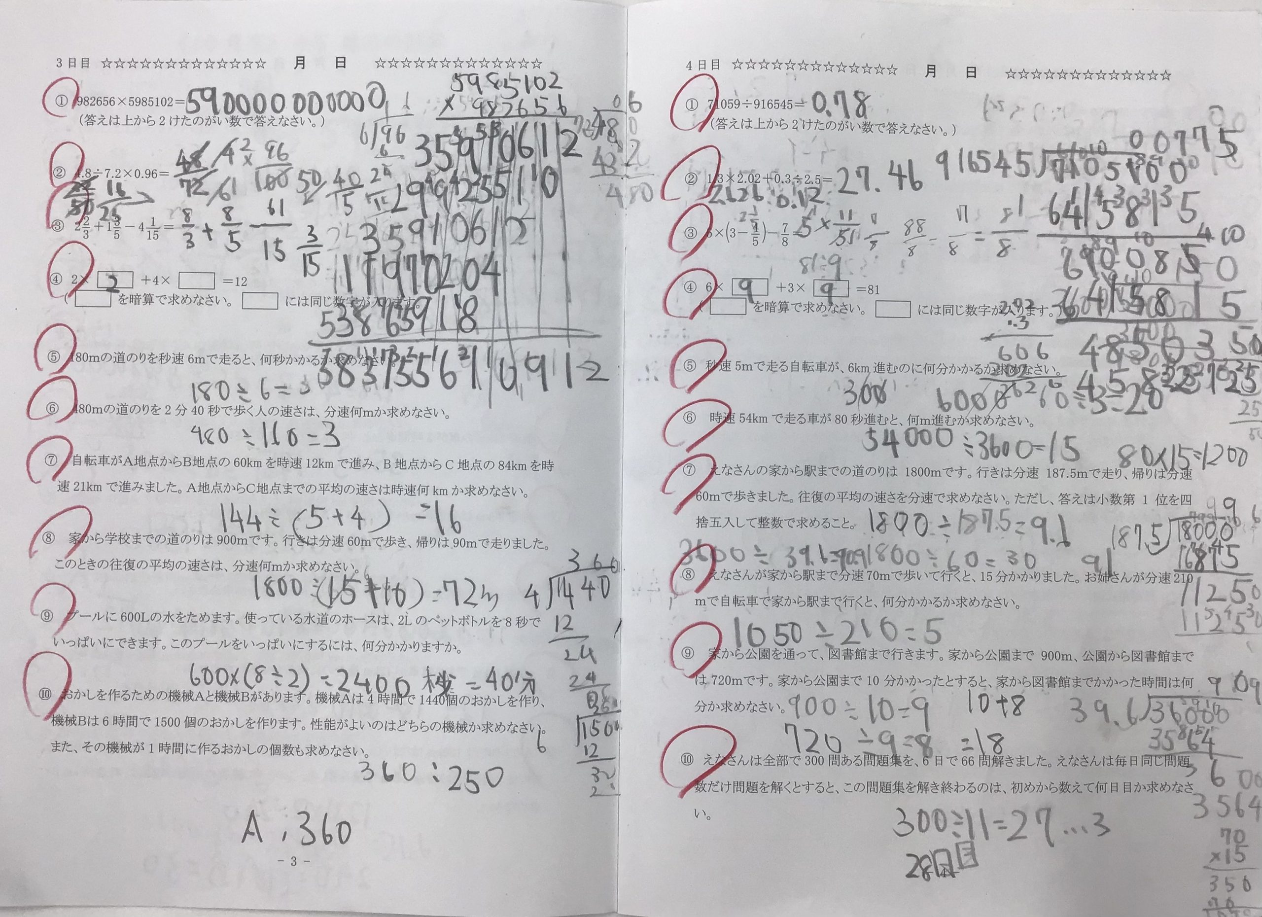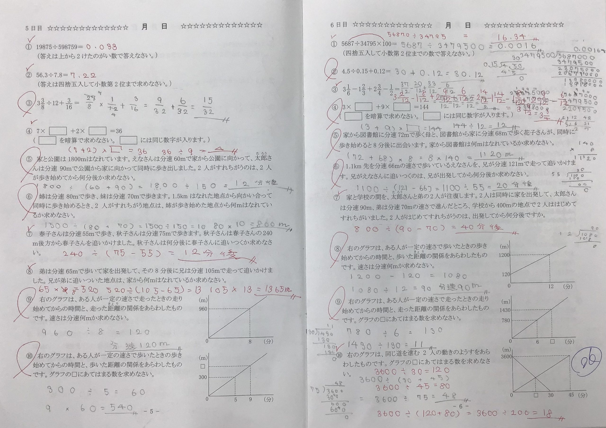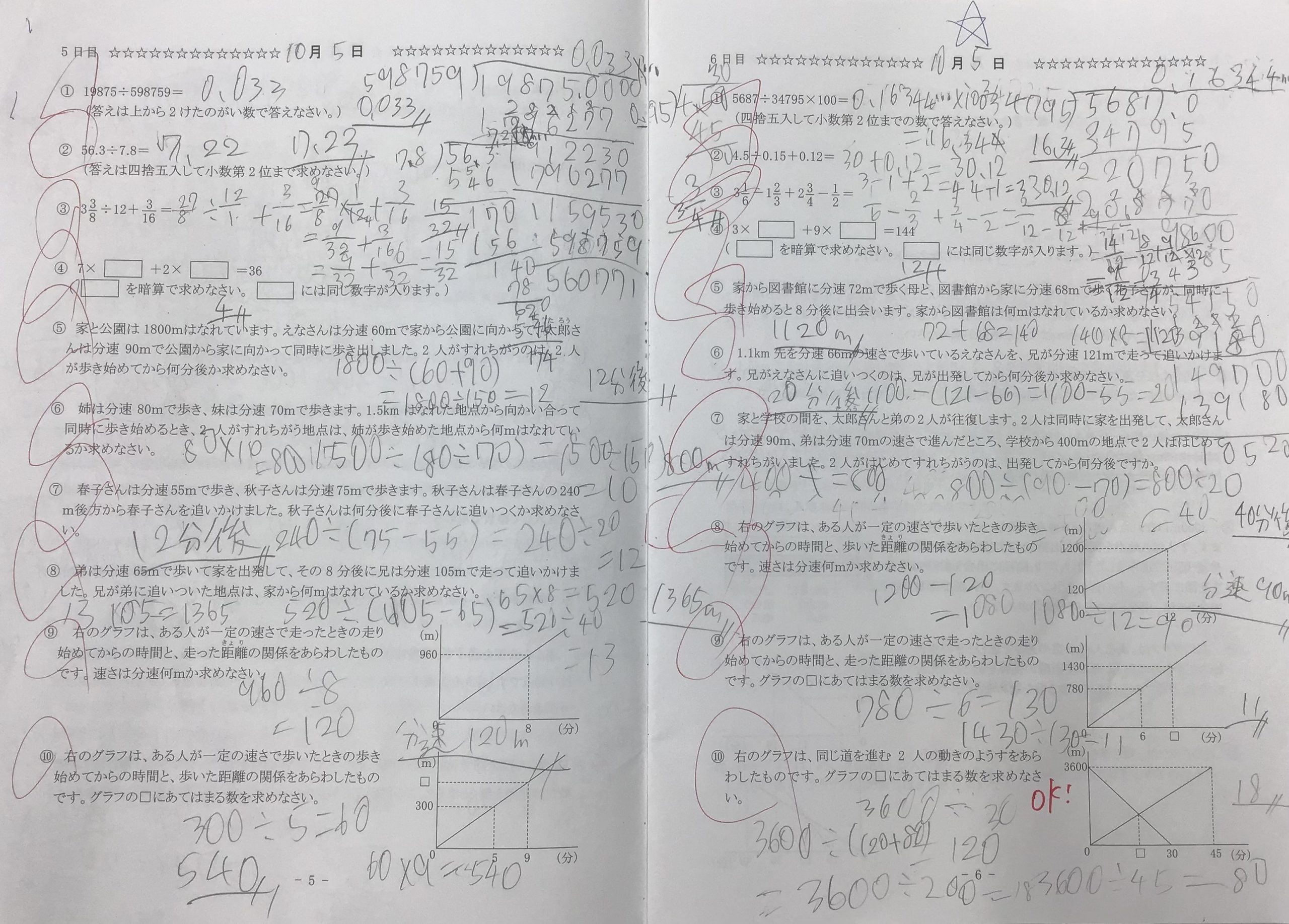 小5生は毎週火曜日に算数の授業を受けており、その時に日々学を提出しています。