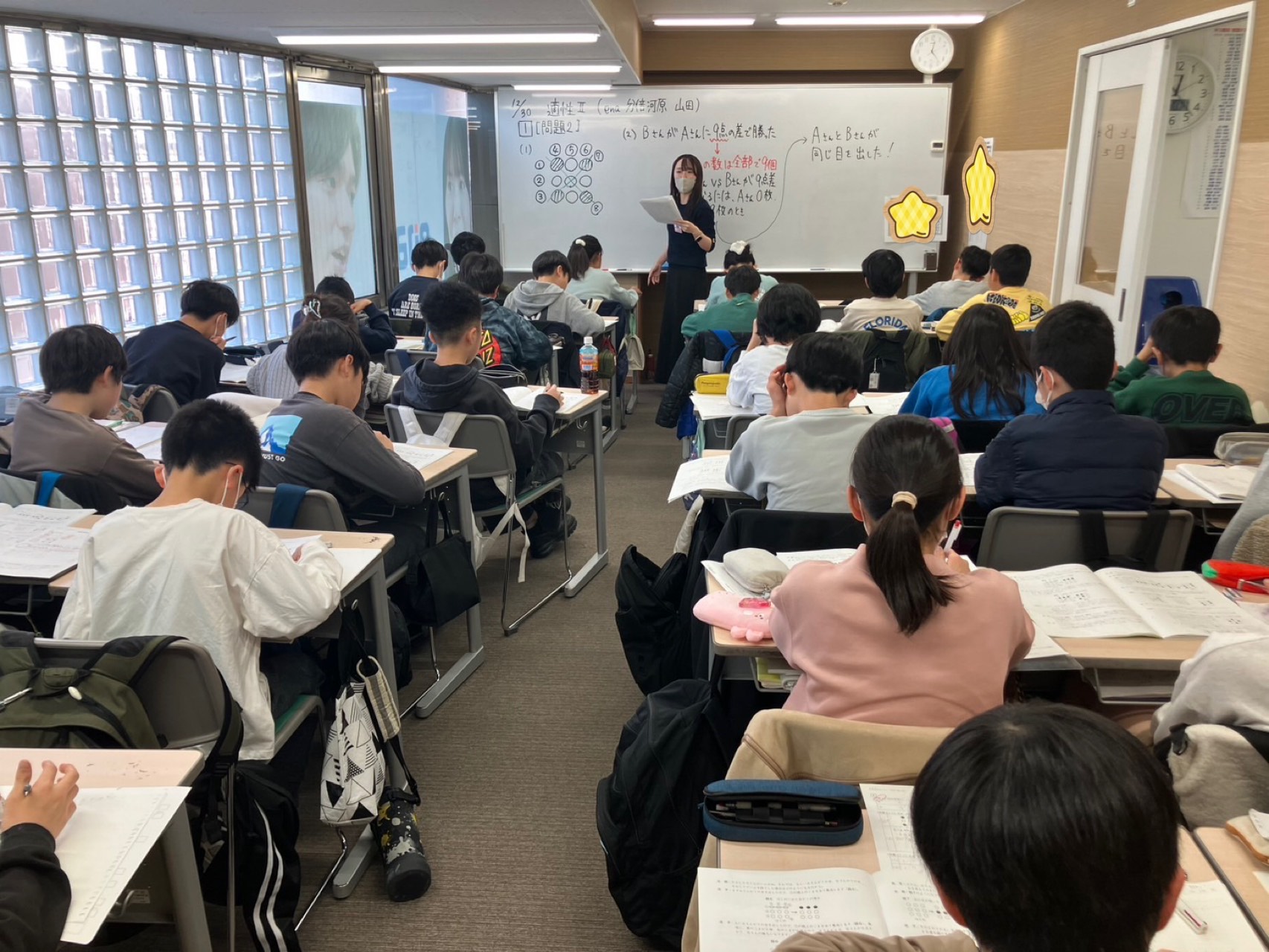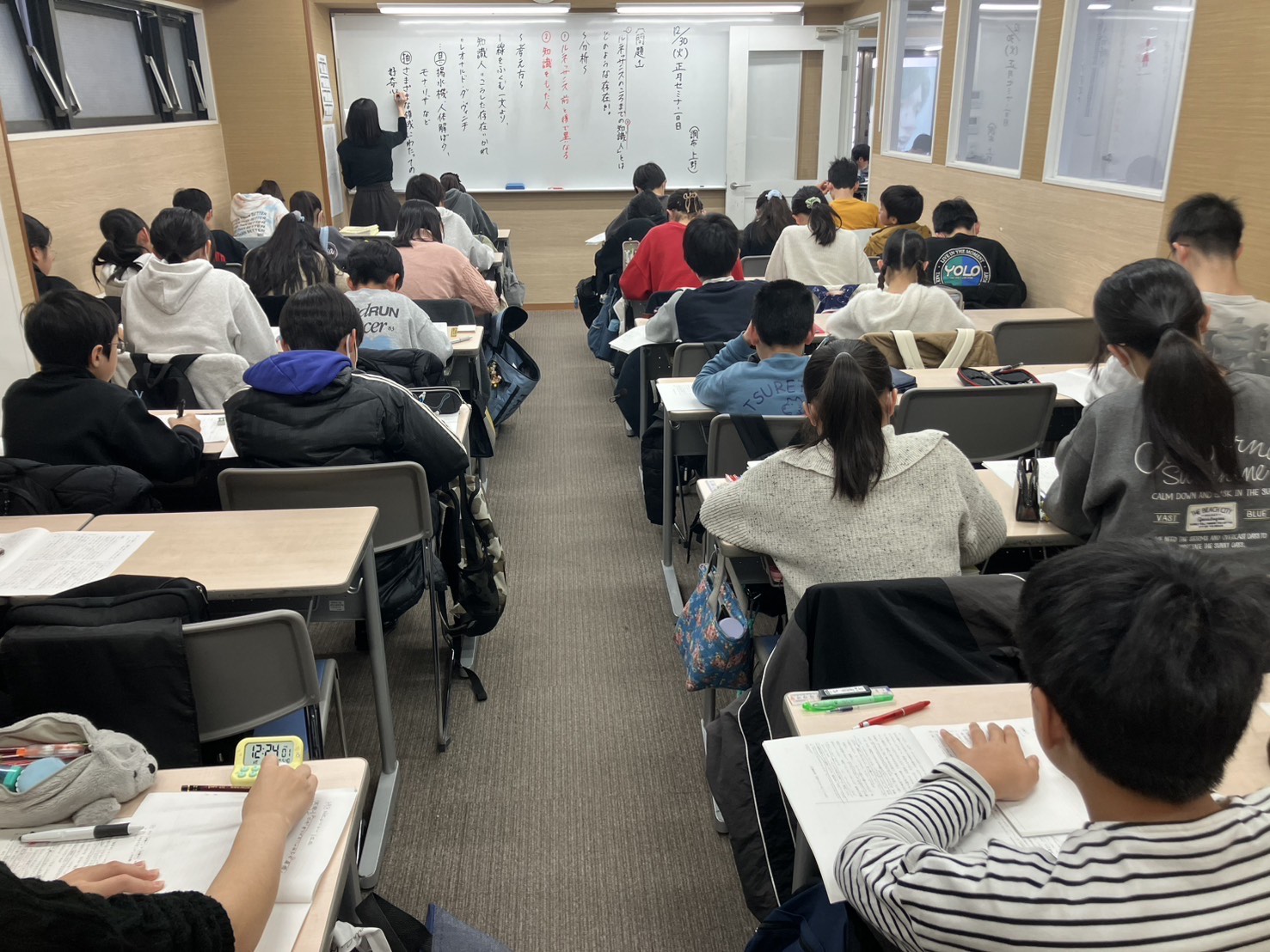 小6生は3クラス、中3生は5クラスで、計8クラスで正月セミナーを実施していますが、
