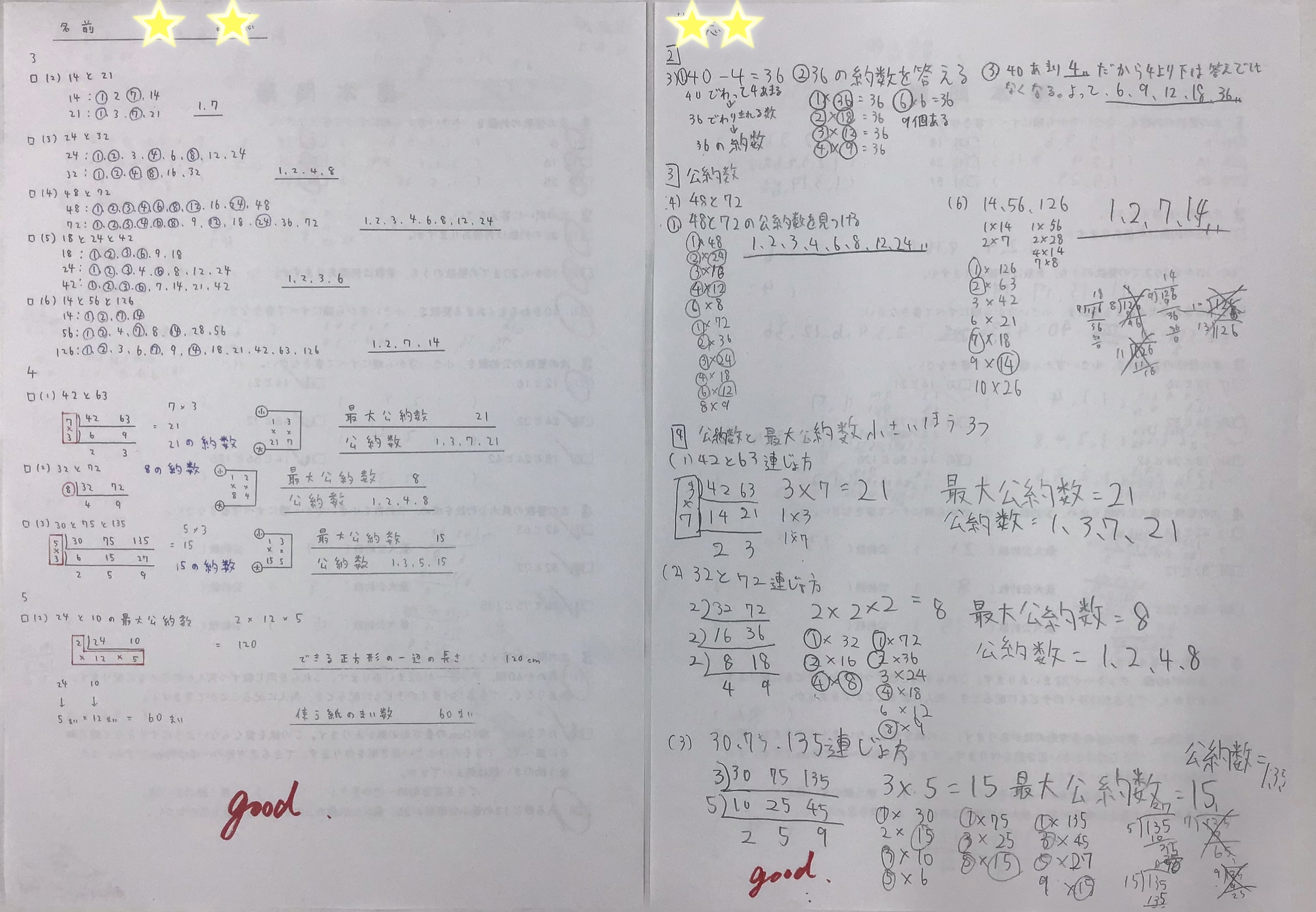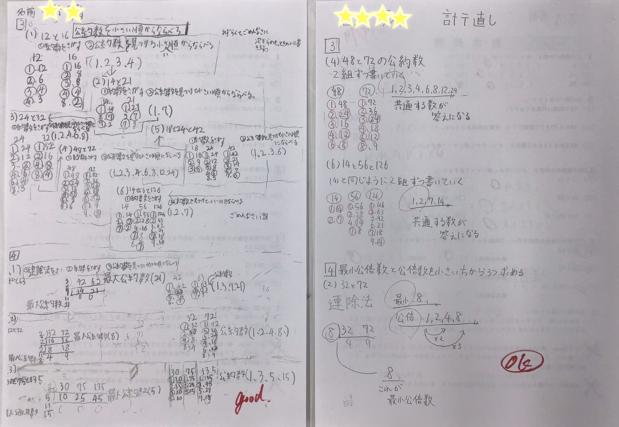 今日の算数の授業では、直しがしっかりできていた分、ほとんどの子が最小公倍数や最大公約数を求められていました。