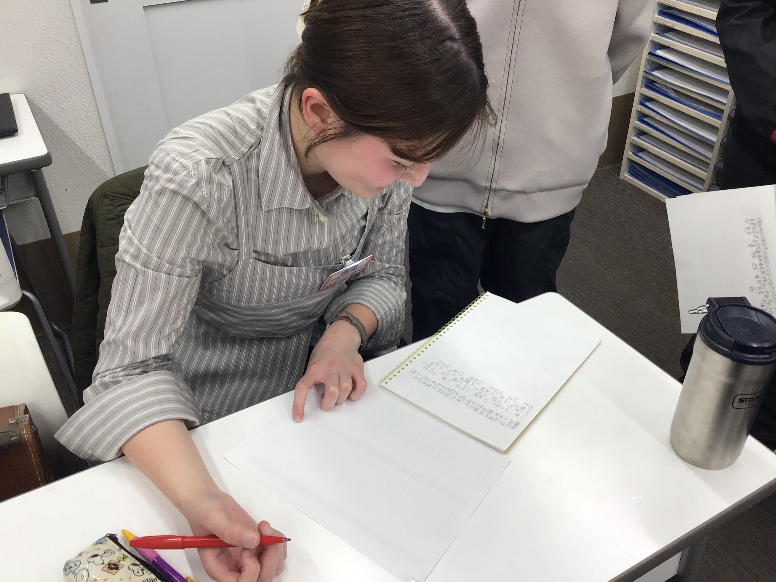 小6生たちが、ネーソン先生に漢字テストの漢字チェックをしてもらうための列でした!