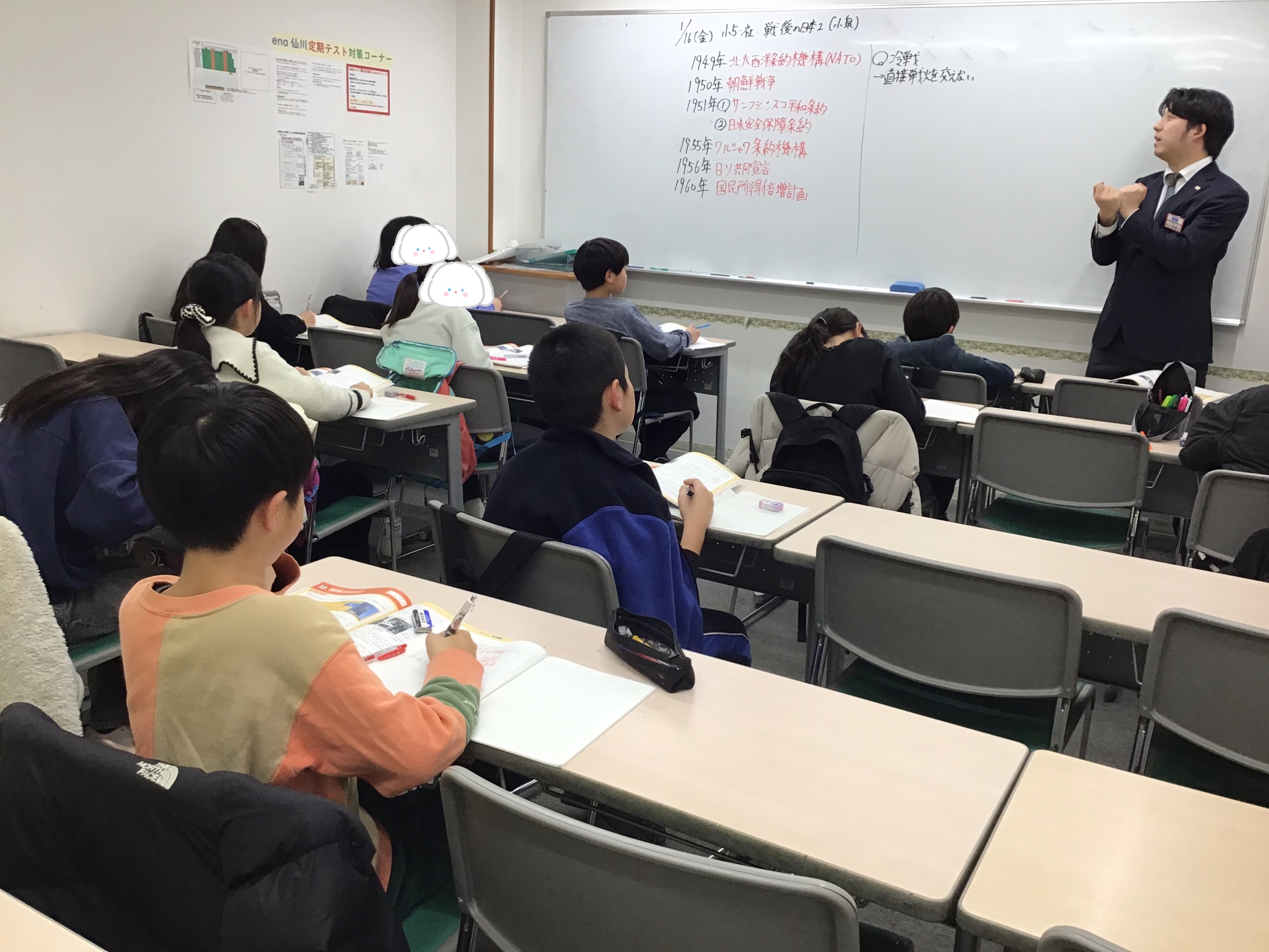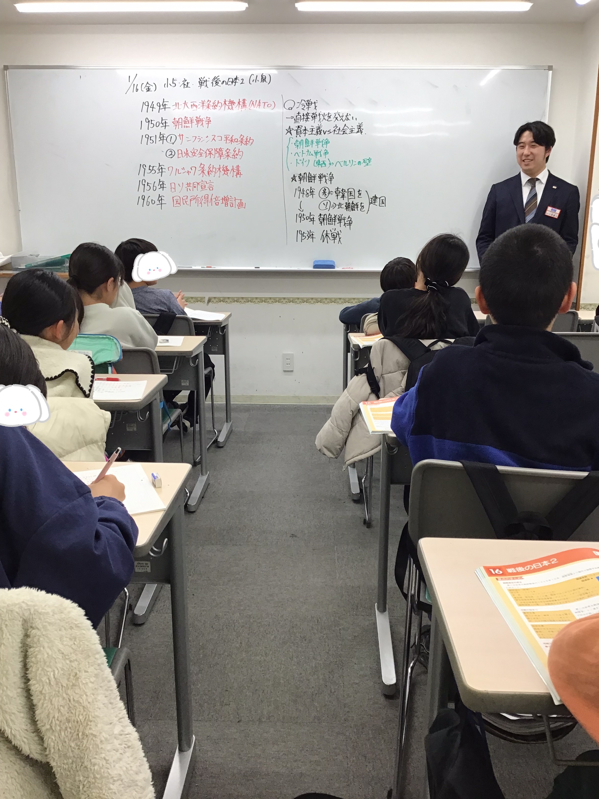 年号を覚えさせるより、要素ごとに流れを重視した授業が展開されています!今回は冷戦と高度成長期の要素。