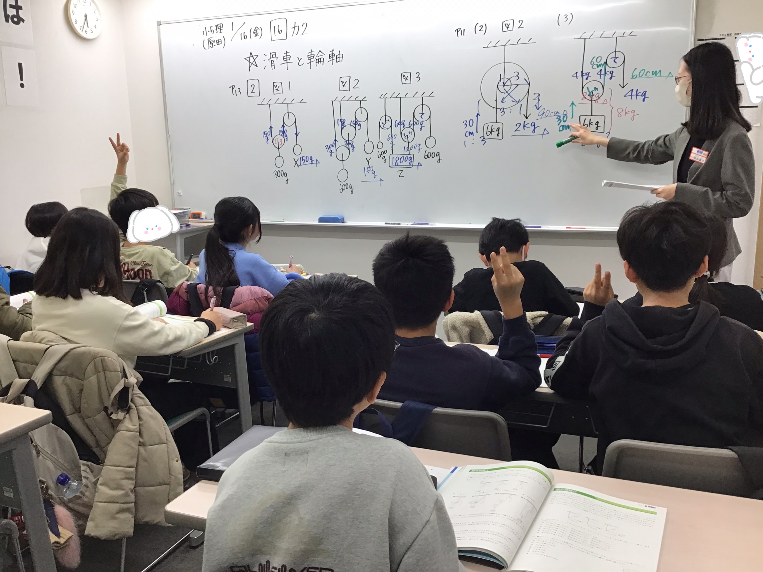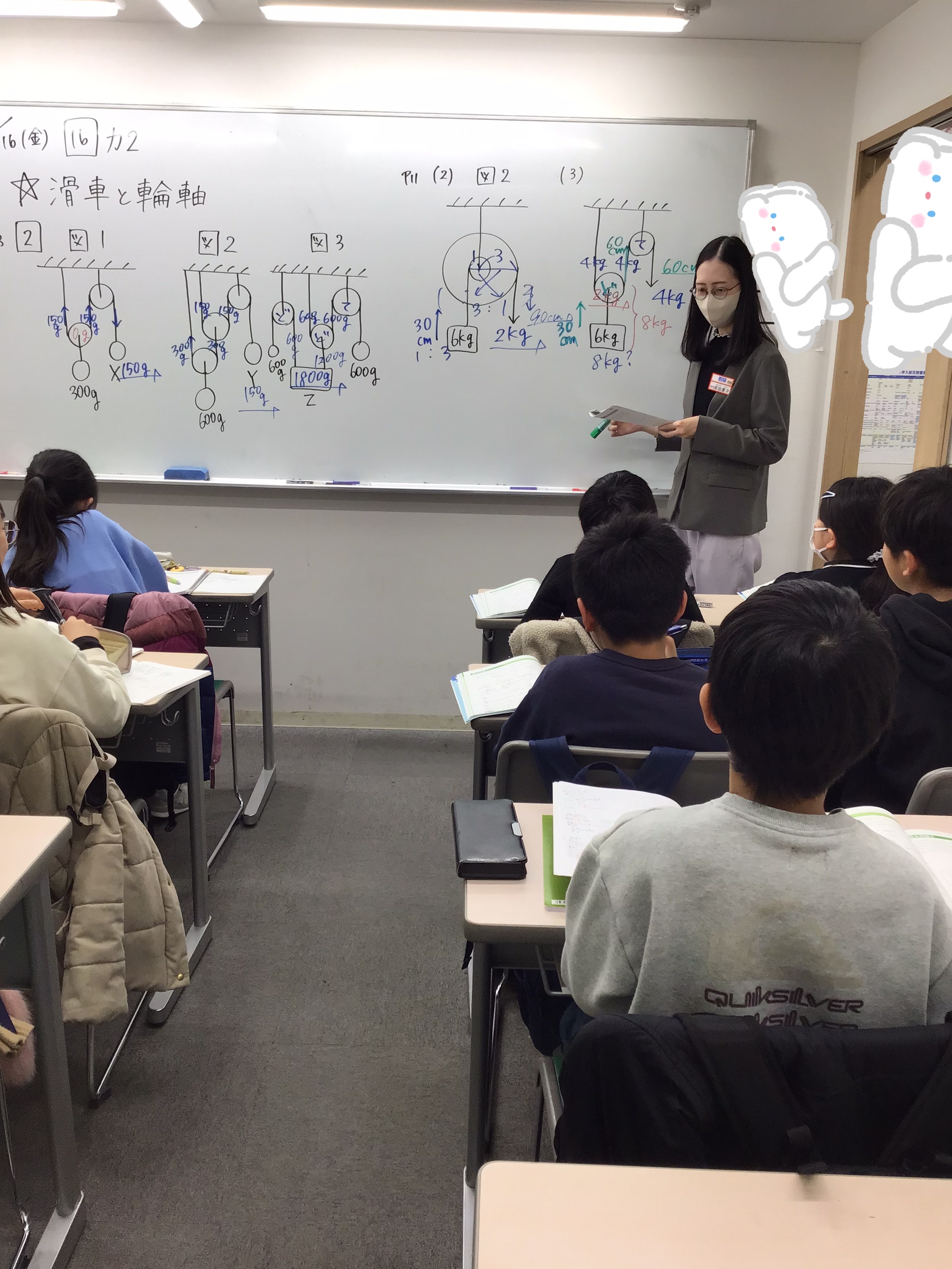 フックやアルキメデスという先人方の発見を利用して、おもり・滑車の重さや密度の計算を頑張りました!