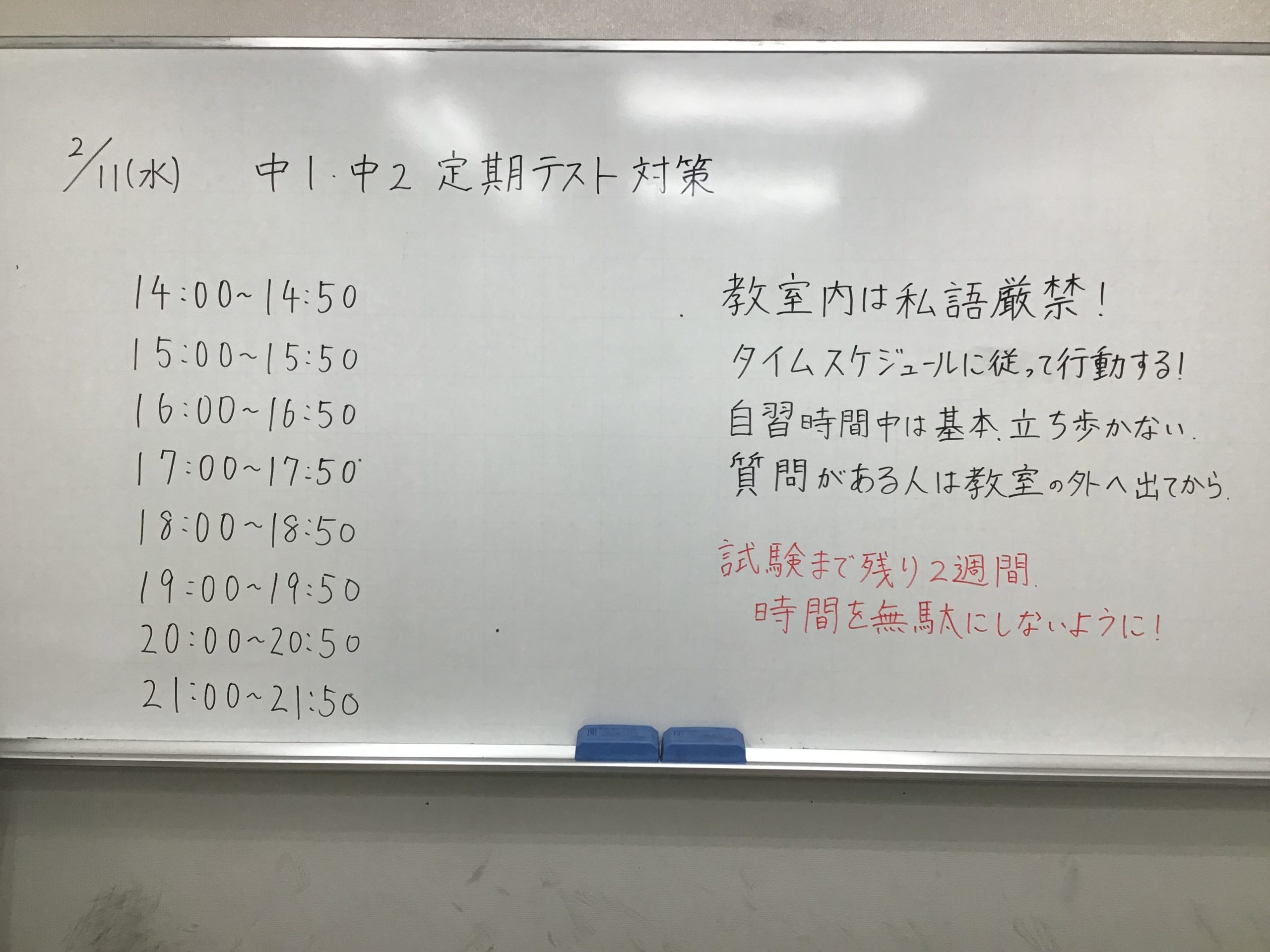 また、中1・中2の皆さんは定期テスト2週間前です!