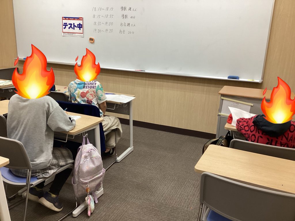 小学生は学力判定テスト(通称:学判)でした。このテストは、月の終わりや講習ごとに行っています。出題範囲は、1ケ月で学習した内容、もしくは講習で扱った全内容になります。