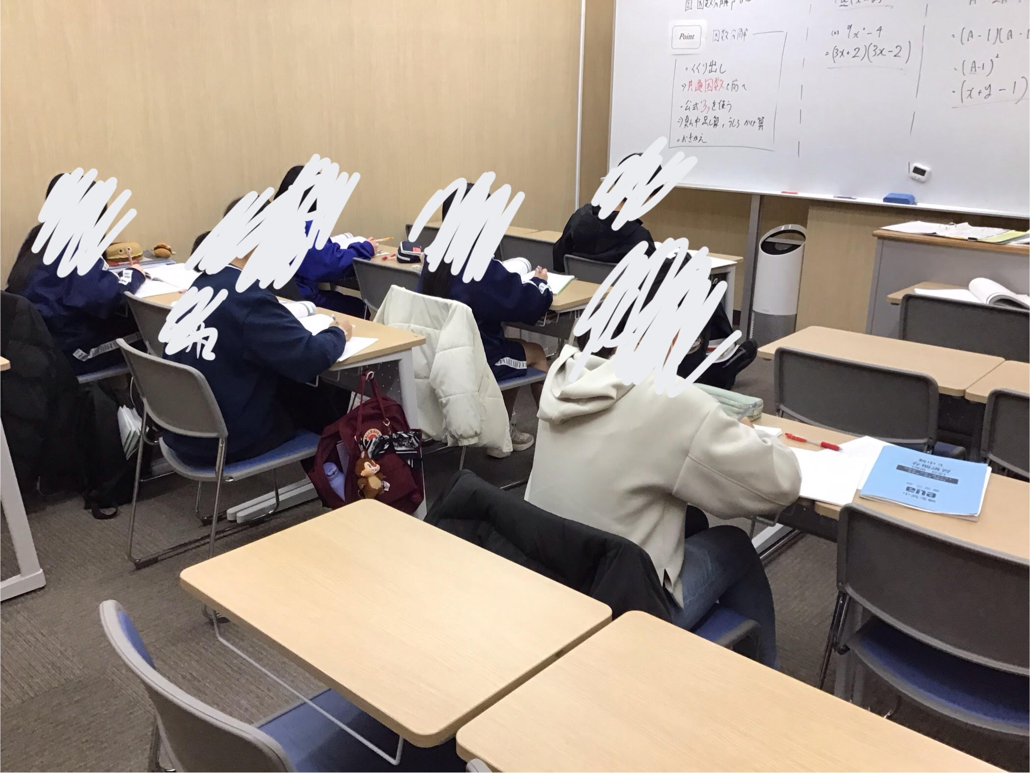 因数分解を扱いました。展開が良く復習できている生徒は本当に成長しています。逆に復習が追いついていない生徒はせっかく授業を受けているのにもったいないことになっています。宿題を必ずこなし、小テストは満点にこだわって頑張りましょう!