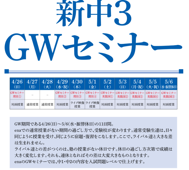 ☆中3のみなさん、ゴールデンウィークで周りと差をつける!!(詳細は下記バナーをクリック)