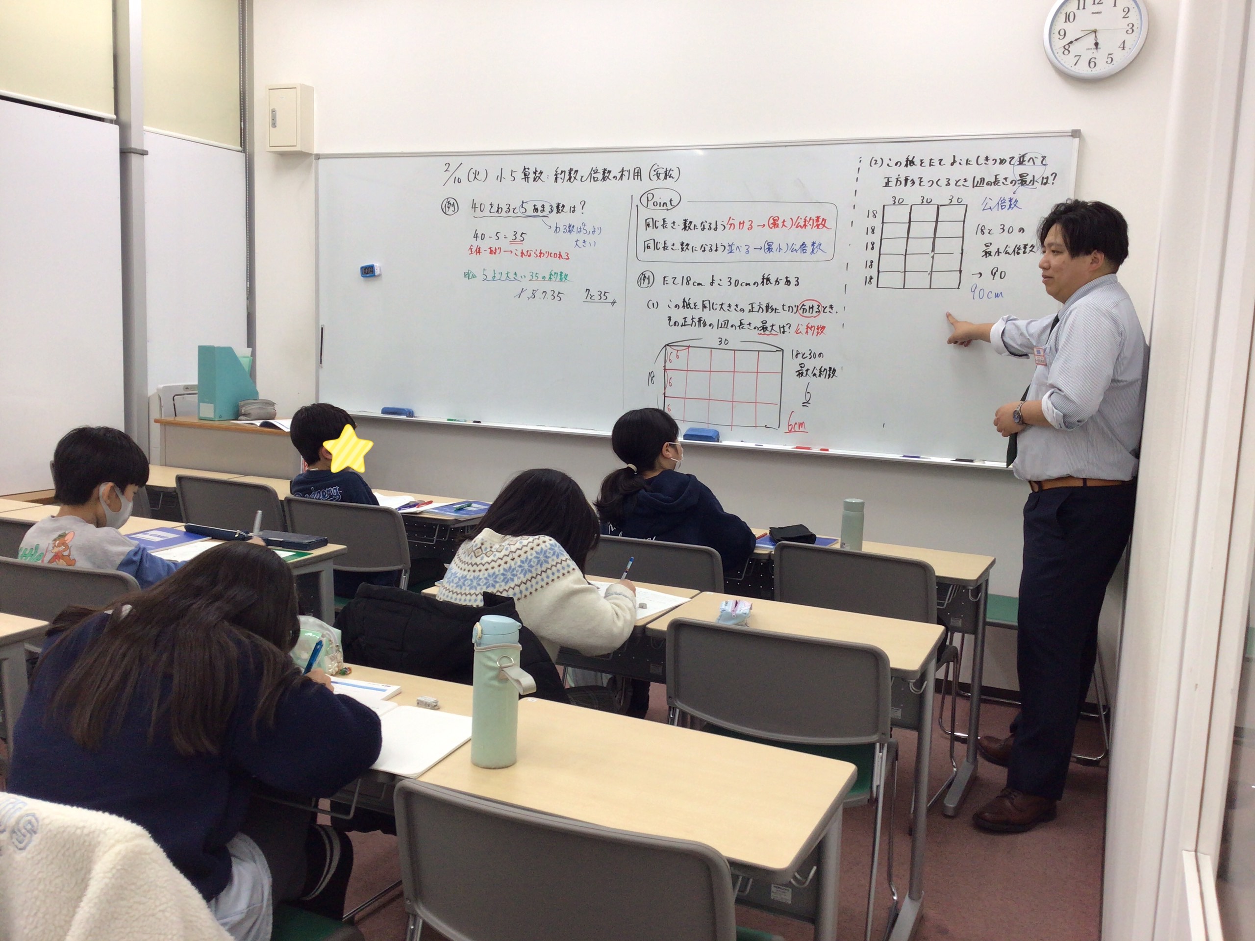 同じく小5算数の様子です。公約数、公倍数の性質を知ったうえでそれぞれ使い分けましょう!