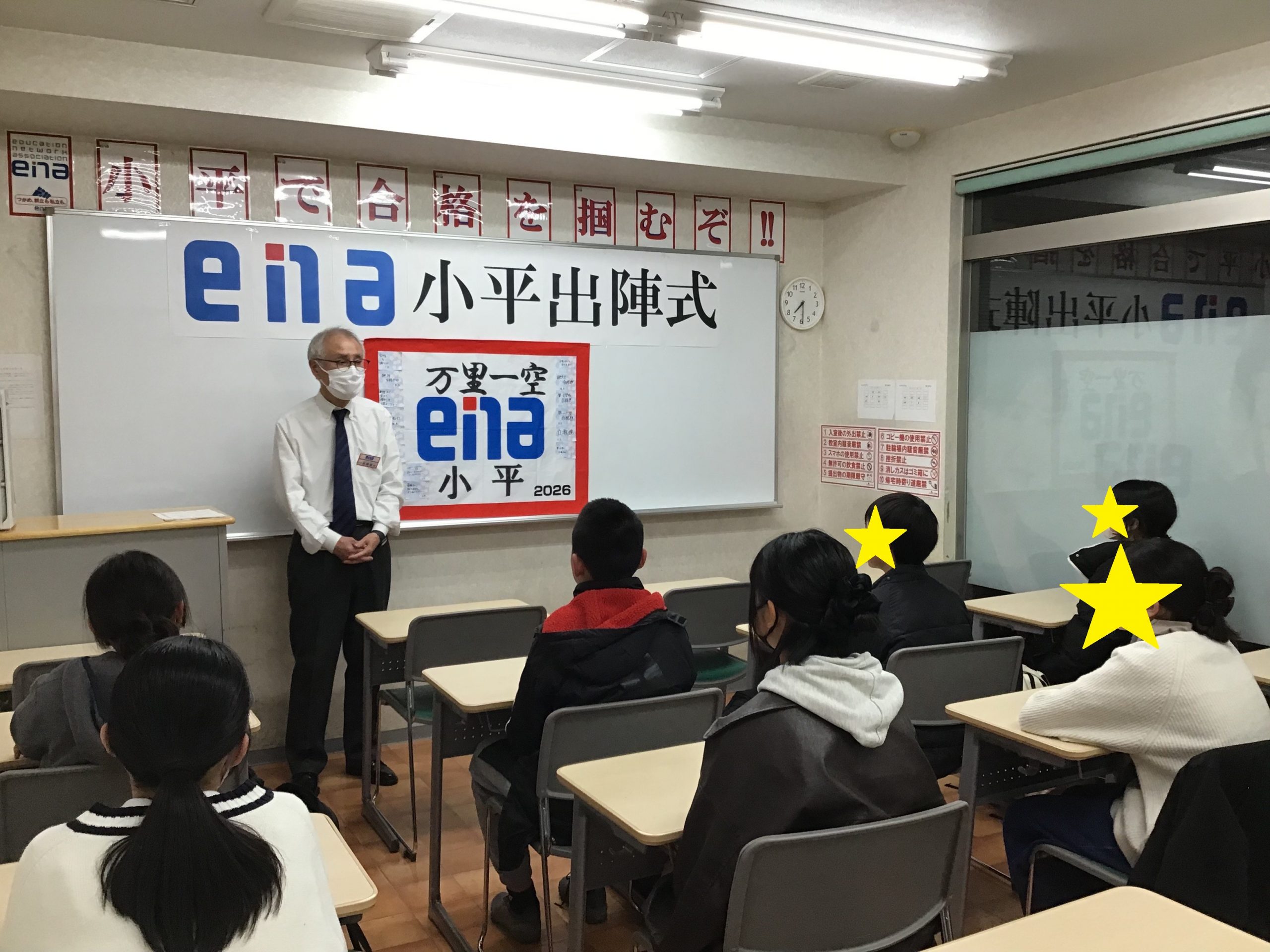 昨日は小6最後の授業で終了後出陣式を行いました。