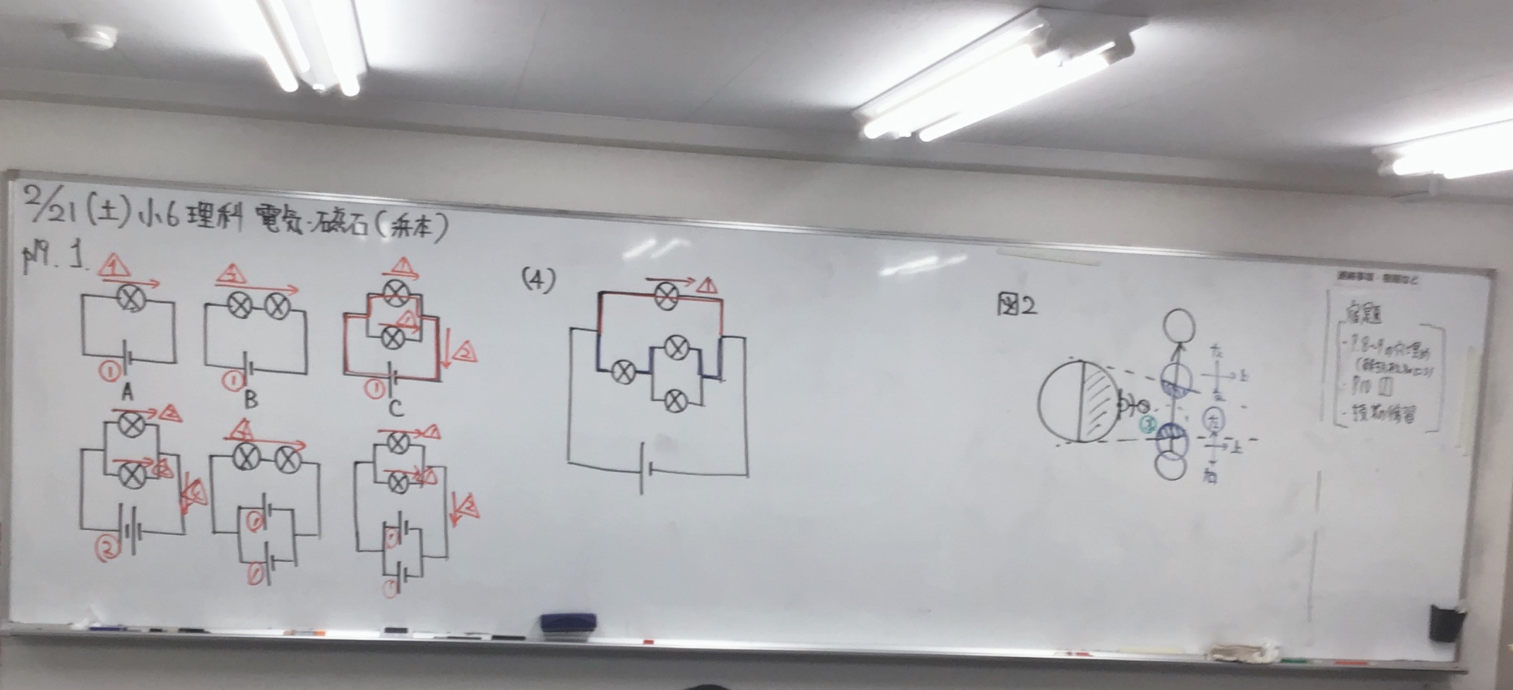 本日の小6理科では電気や磁石に関して、問題演習を交えながら学びました。