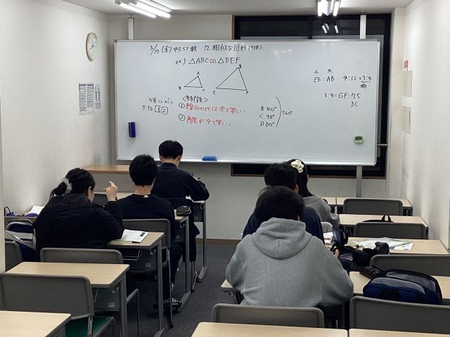 春期講習中の夜の授業は中学2年生・中学3年生の授業です。