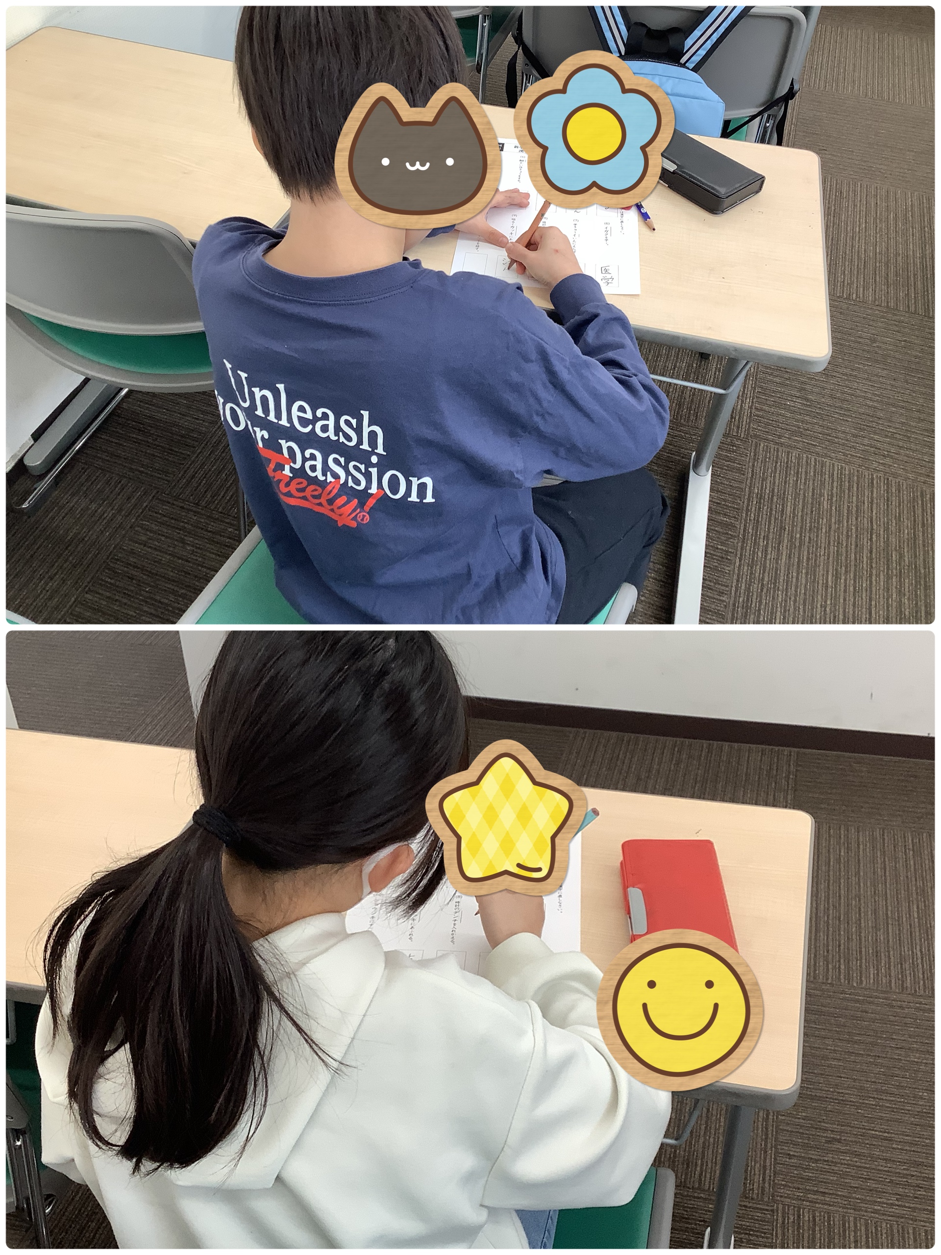 初めて塾に来た、という生徒たちがしっかり漢字練習をしてきており、やる気十分な姿が見られました。