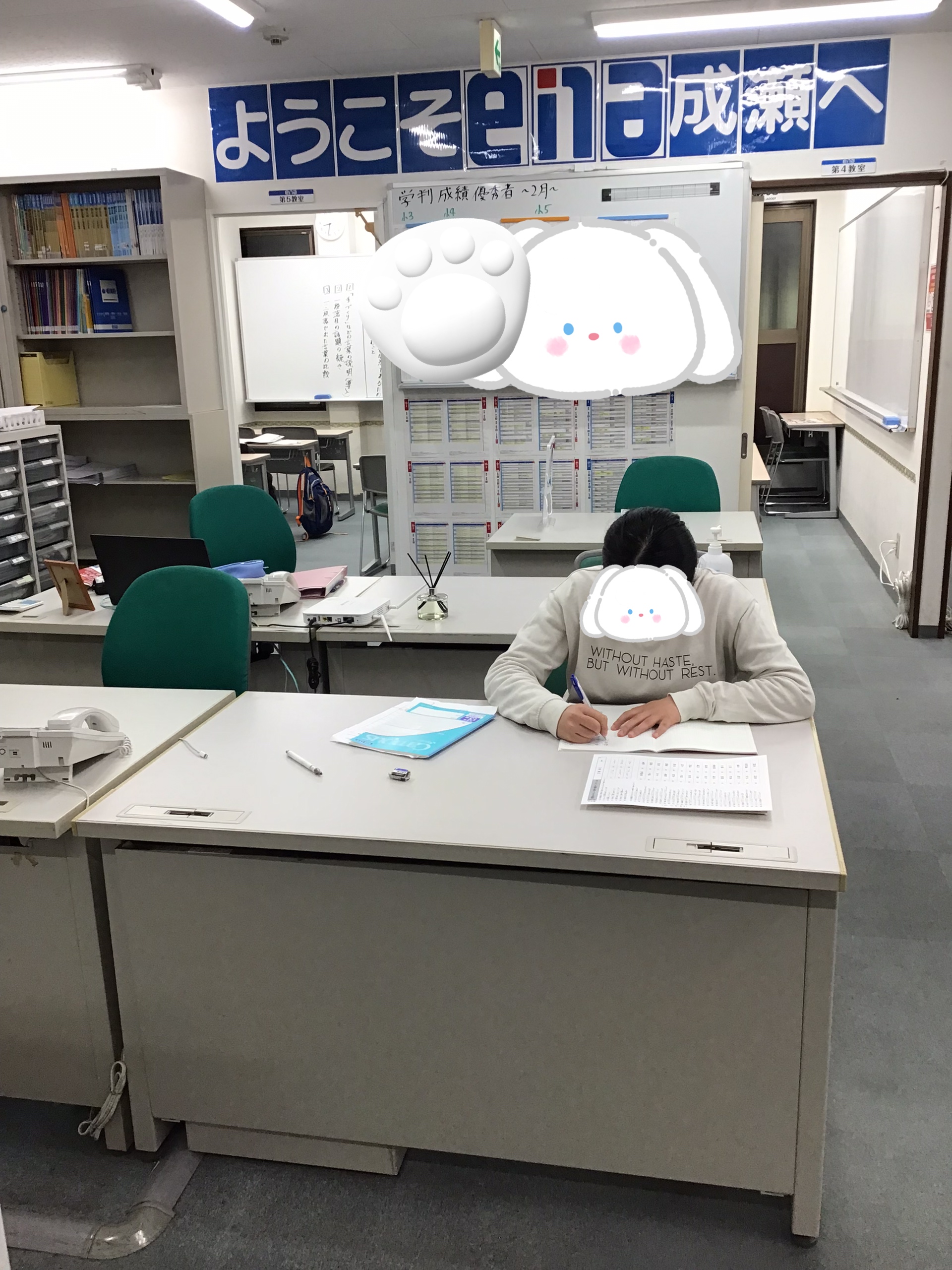 ちなみに生徒が職員室で勉強するのは私が前にいた校舎文化のサンプリングです笑