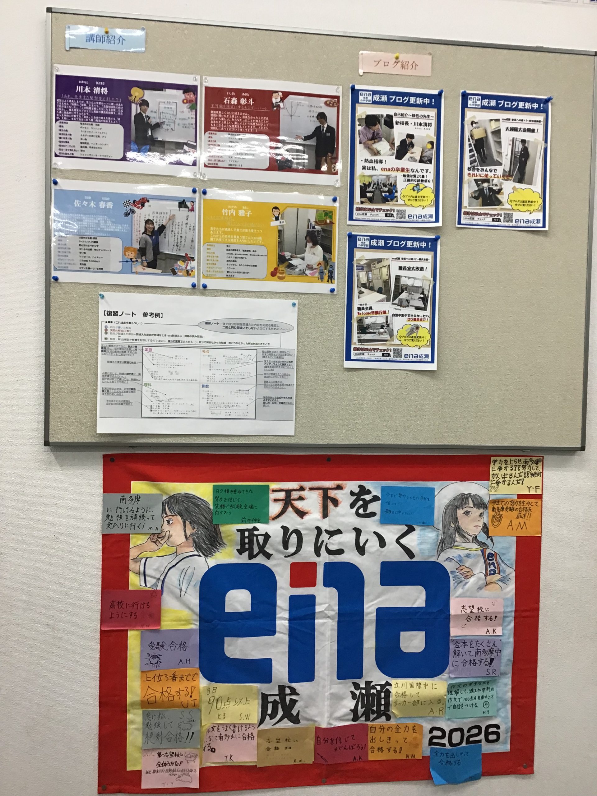 本日は今月からena成瀬に新しく加わりました、職員室の掲示達をご紹介いたします!