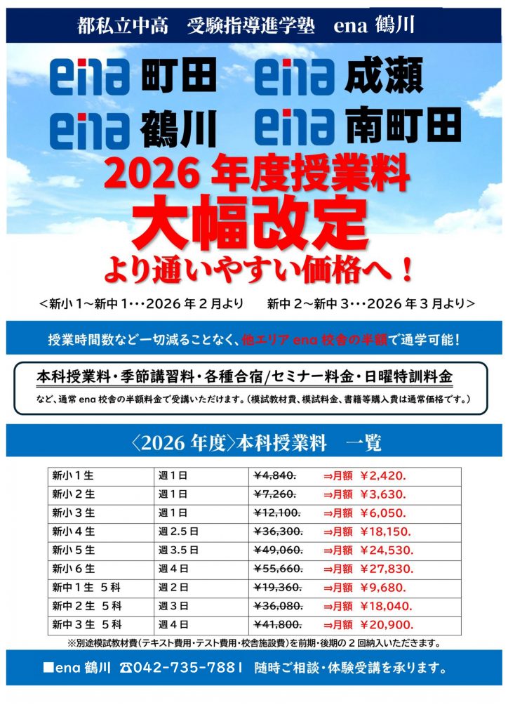 ★★★ena鶴川は2026特別価格で本科授業スタート!★★★