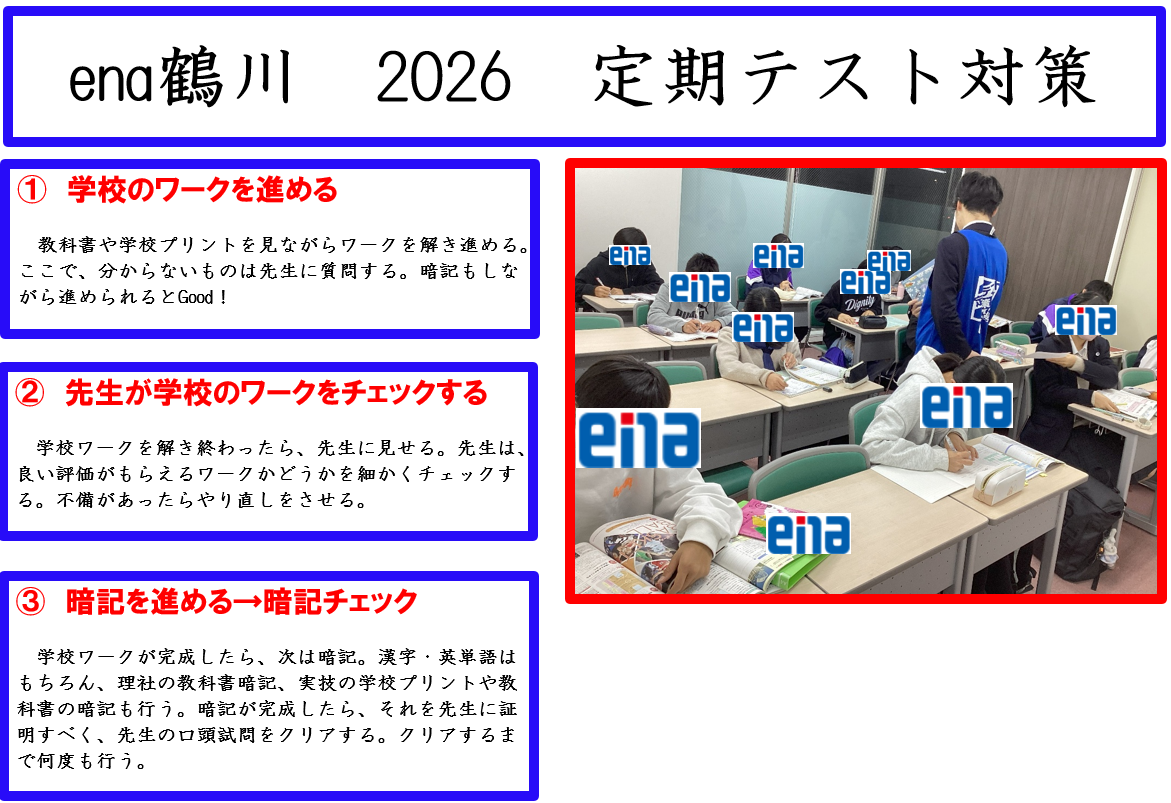 今回のブログでは、2026年ena鶴川中学部の定期テスト対策についてお知らせします!