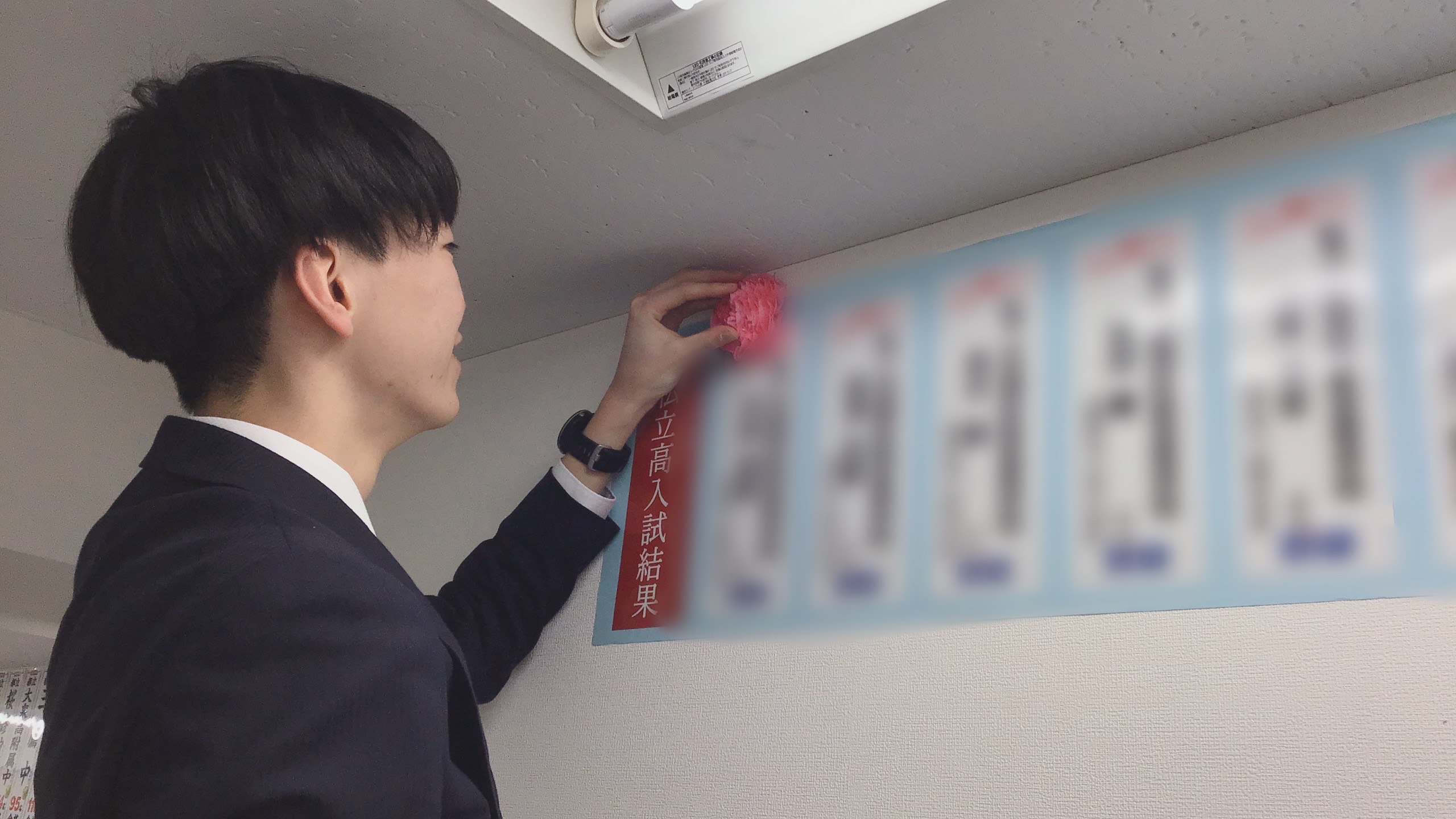 ▲私立高校入試結果 本日より掲示を開始!記念すべき第1号を掲示しております!