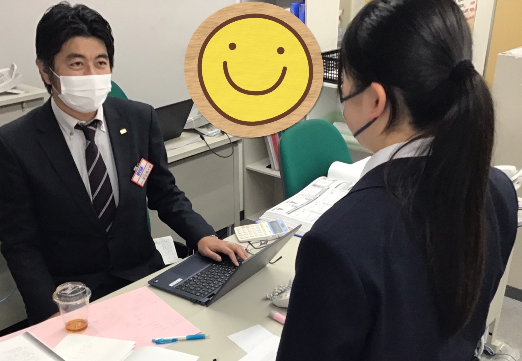 【質問に行く中3生(と須金校長)】