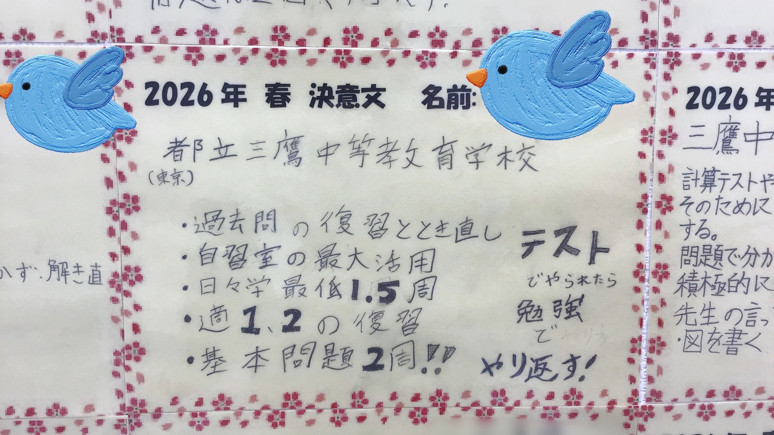 三鷹通信vol.112 小学生新年度から2週間!&中学生 追い込み!!!