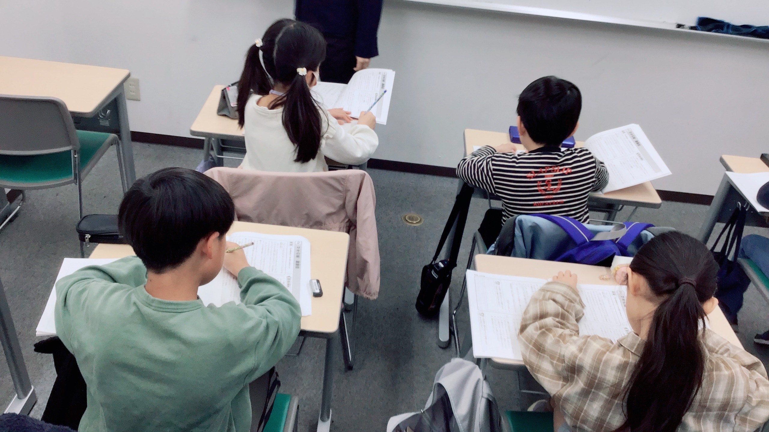 ▲小3国語 問題演習中の様子 みんな文章読解を集中して解いています!私が撮影に行ったのも気づかないくらい一心不乱で素晴らしいです!!