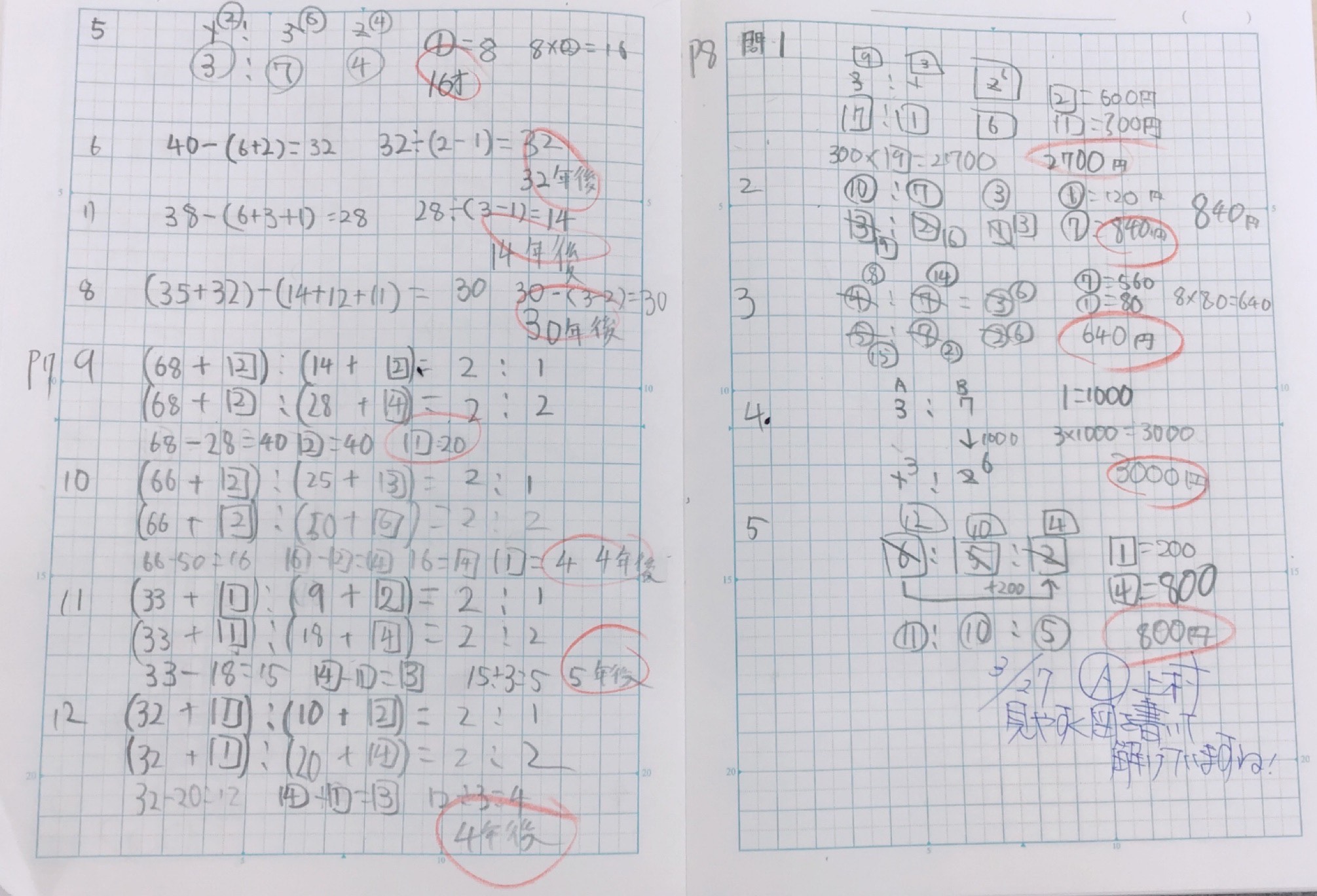 ▲小6算数 宿題ノート 書くべき内容をしっかり書いています!こうした細かい部分をチェックし、声掛けをしております!!