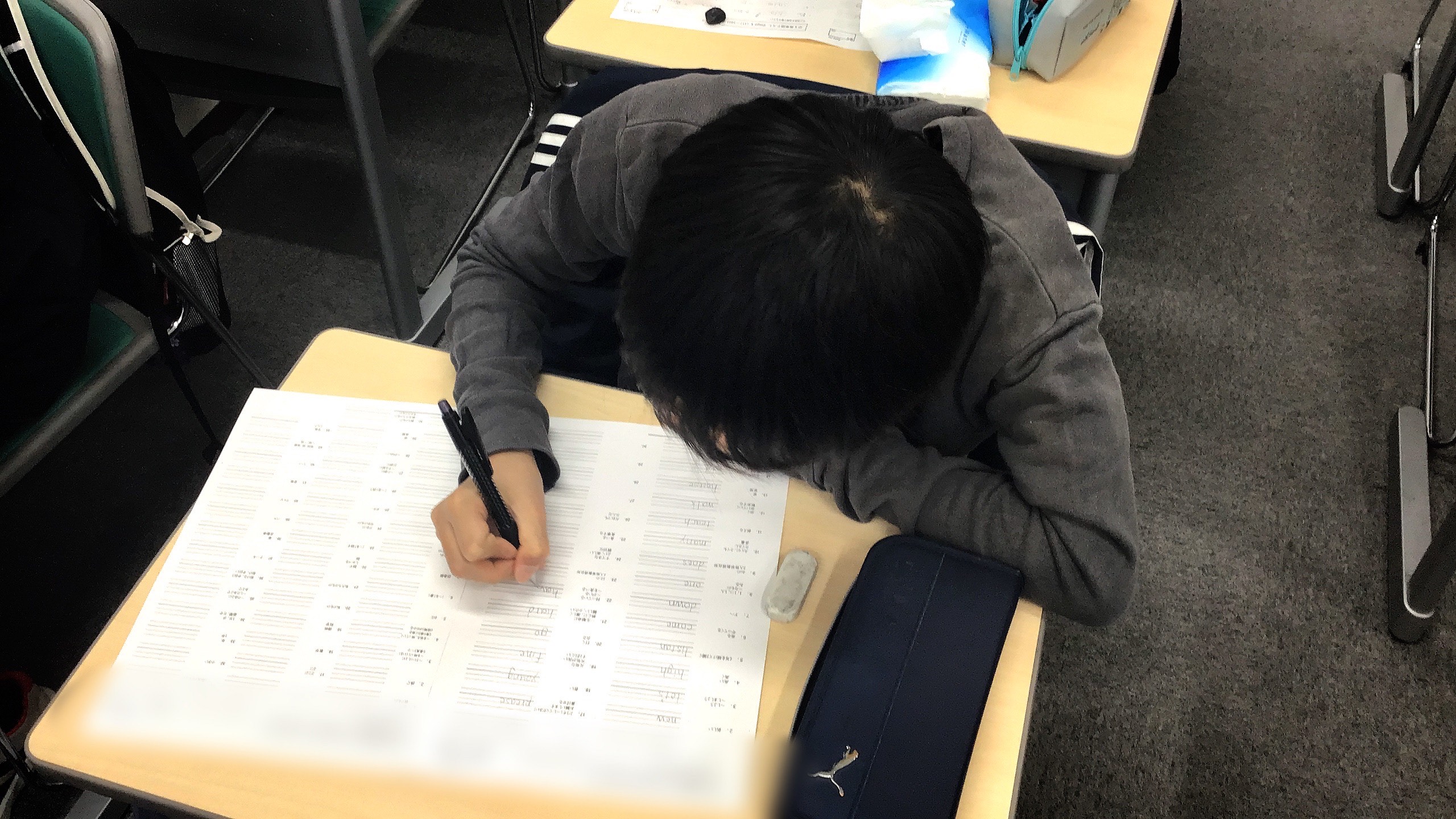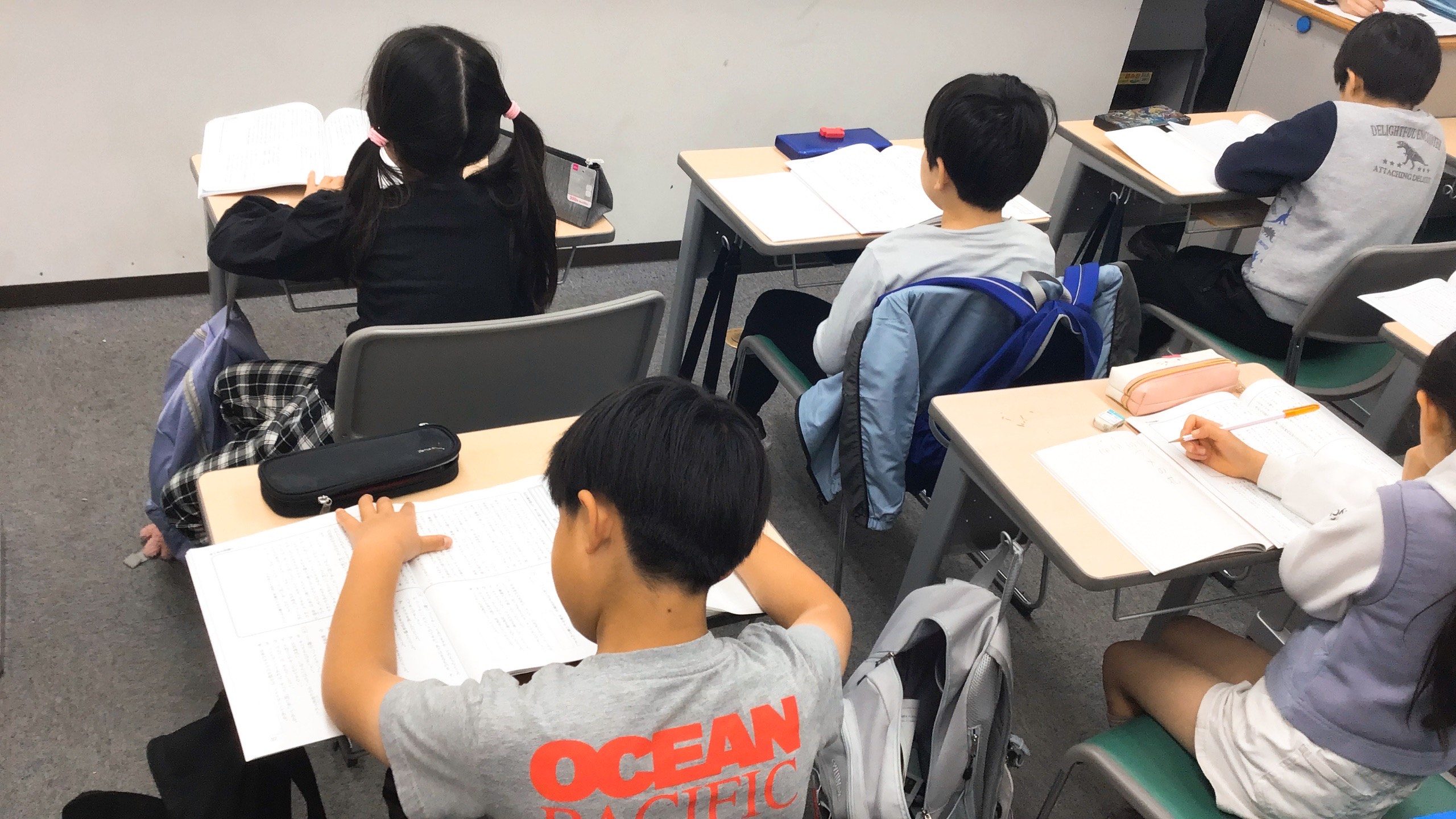 ▲小3国語の演習中 彼らは5日間 演習中の姿勢が受験生みたいに素晴らしかったのです!問題に解くときの姿勢Very Good!!