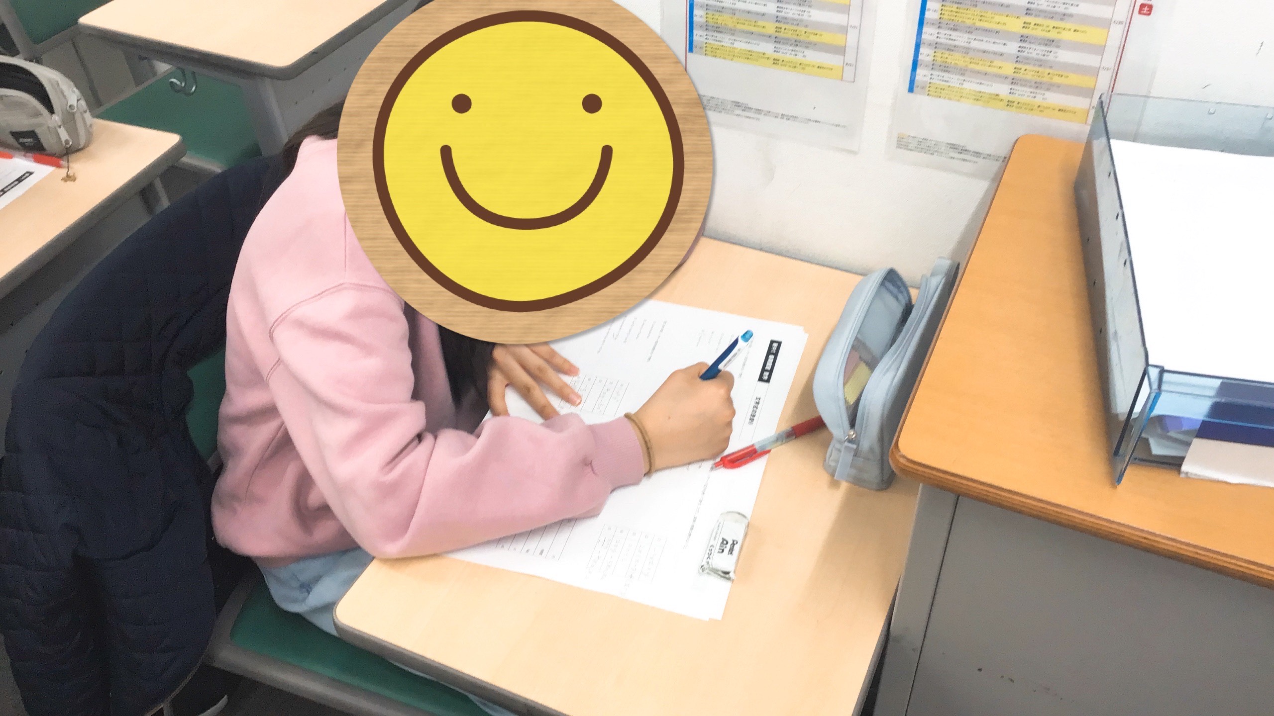 塾に来て、座席に着く。ペンを握る。