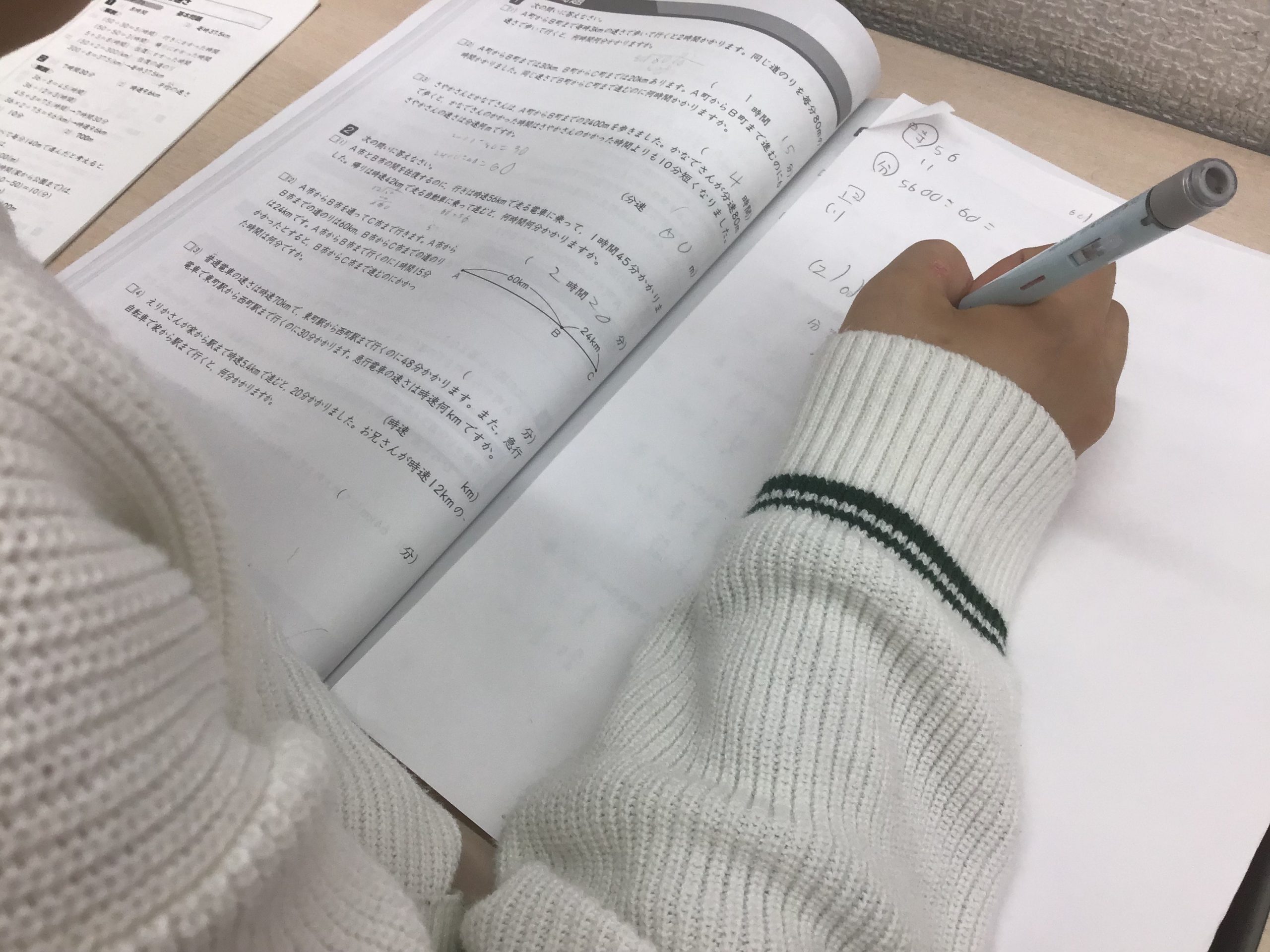 難関単元である「速さの応用」や「図形の計量・証明」に集中的に取り組みました。