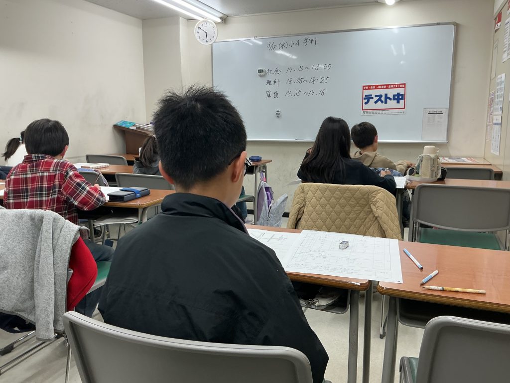 本日(3月18日)は小4、小6、中1、中3の各学年で3月度学力判定テストを実施しました。