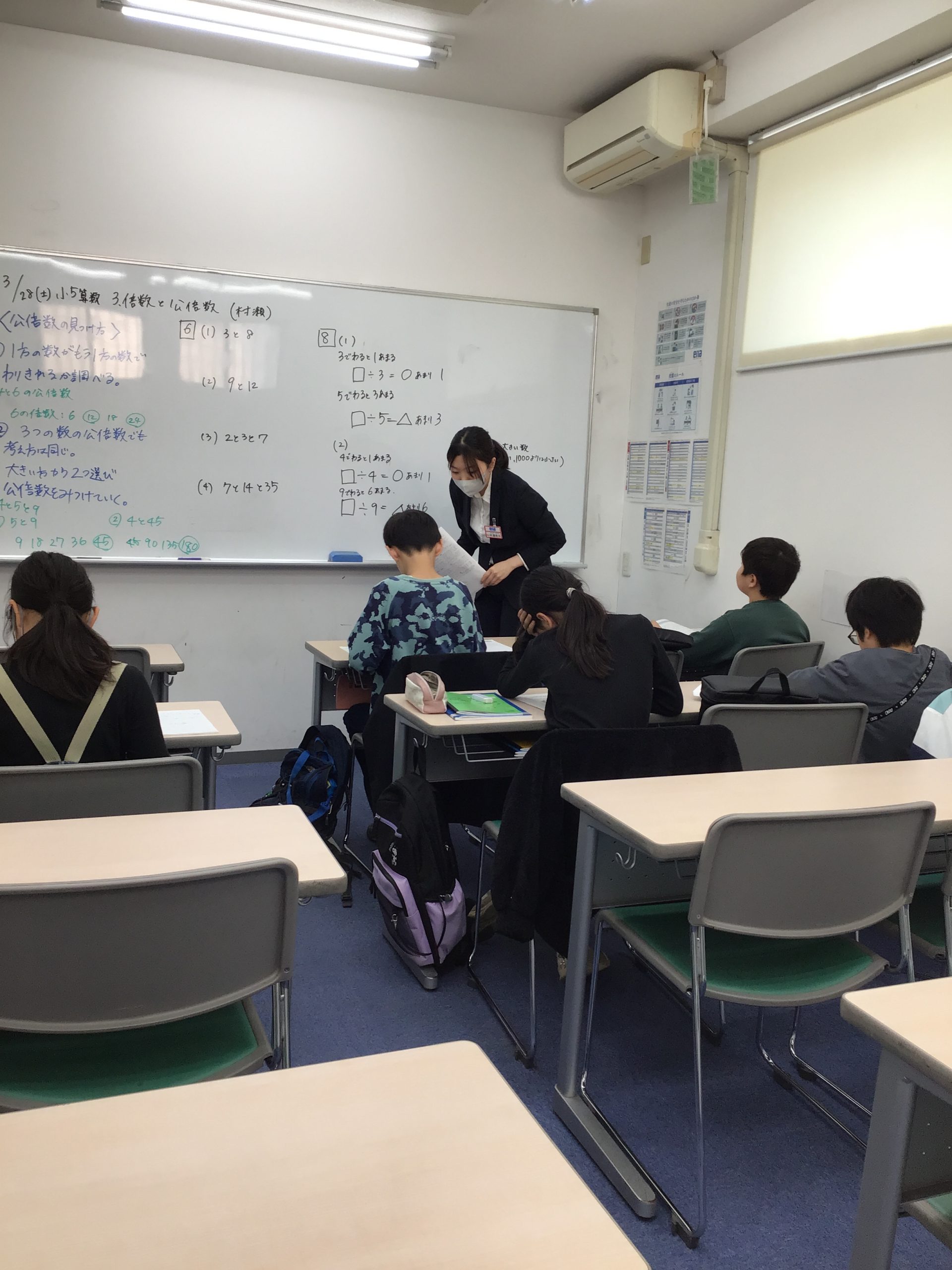 小5算数の様子です!倍数と公倍数の単元!ルールを基準にどのような数になるのか探していきます。
