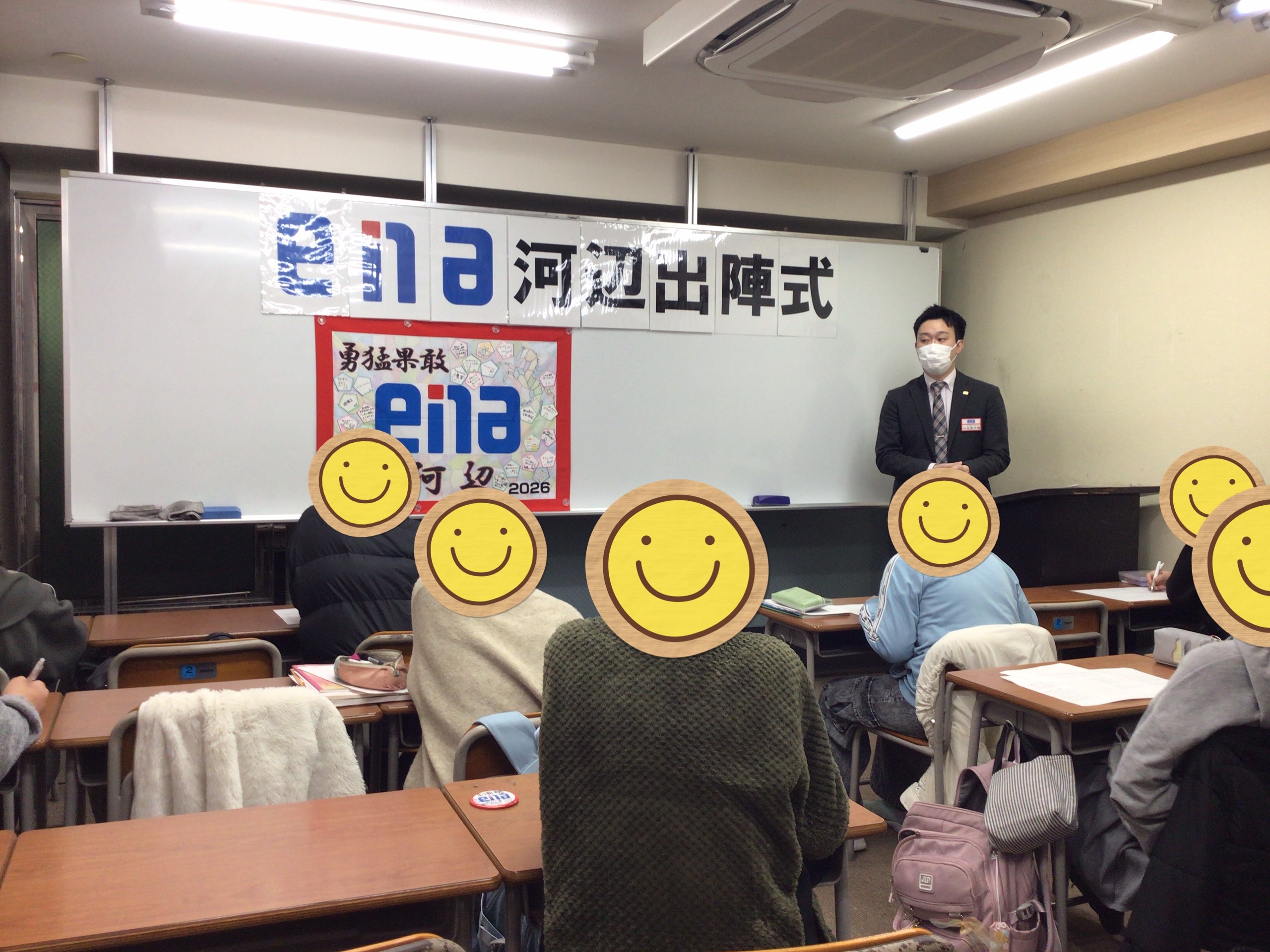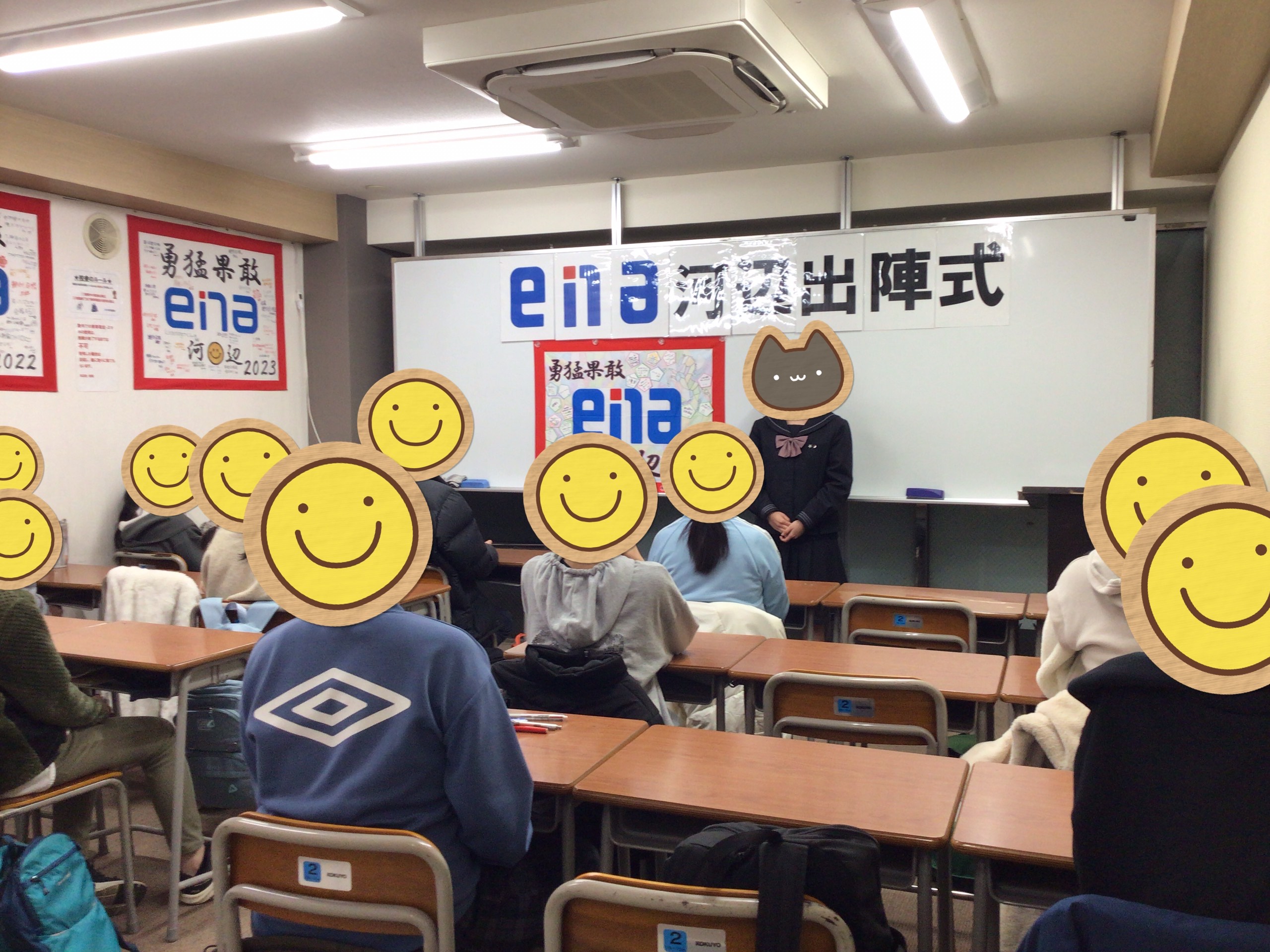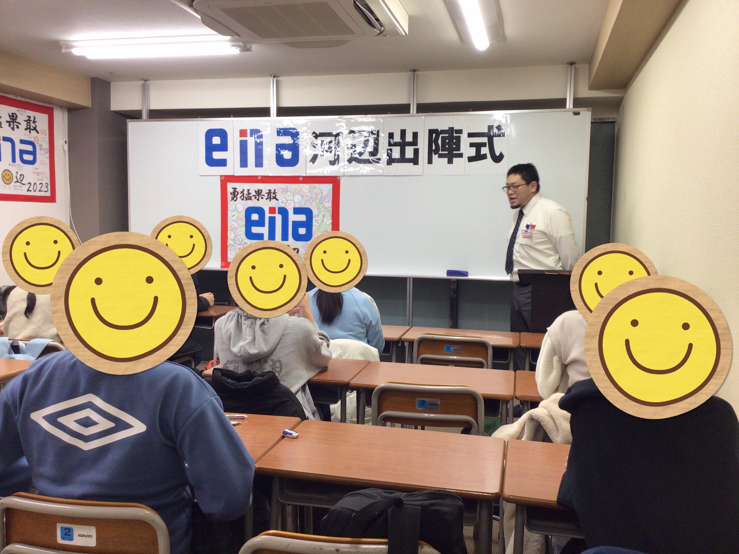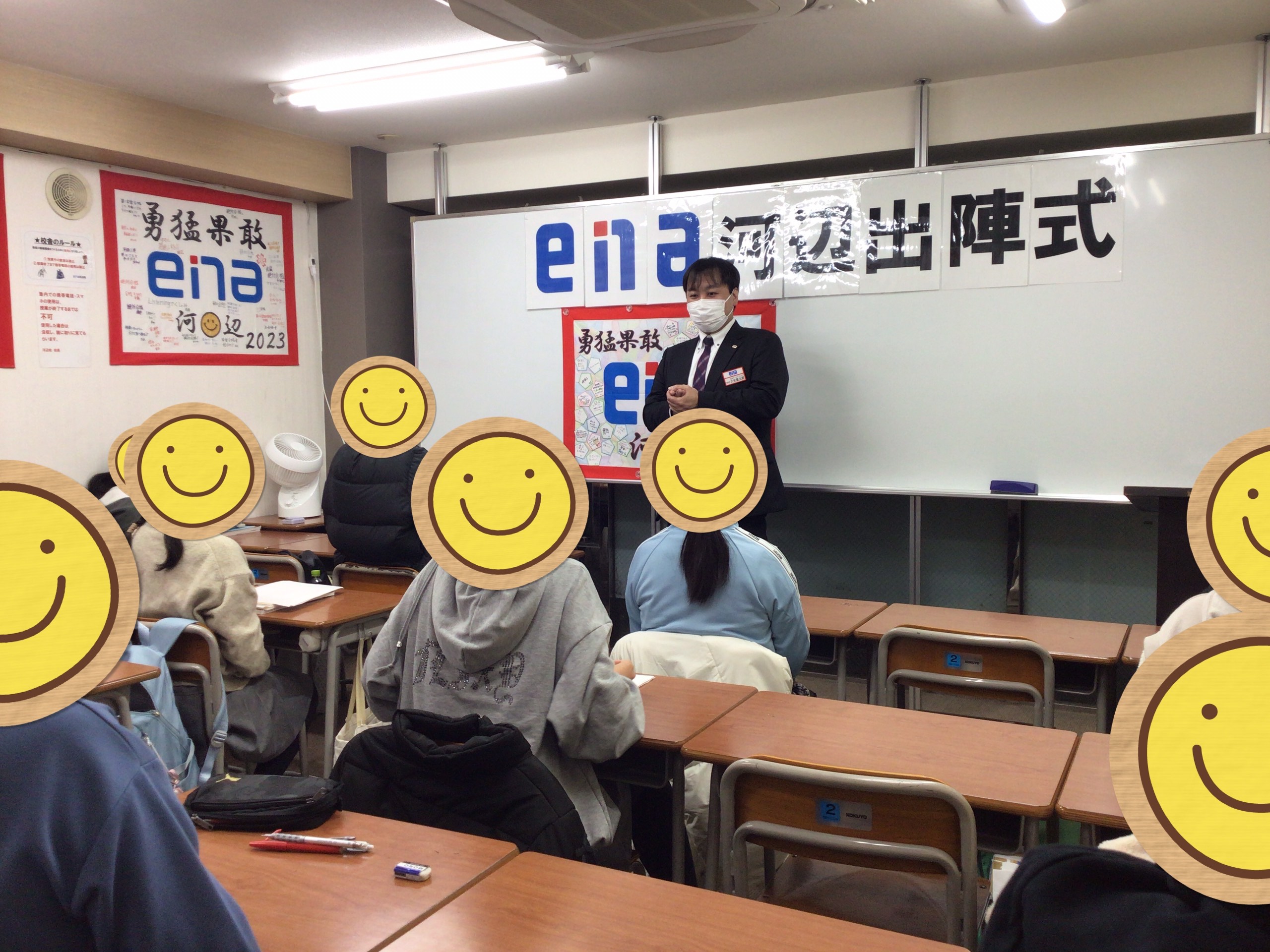 出陣式では、専任の先生方がメッセージを伝えて小6生の背中を押します。