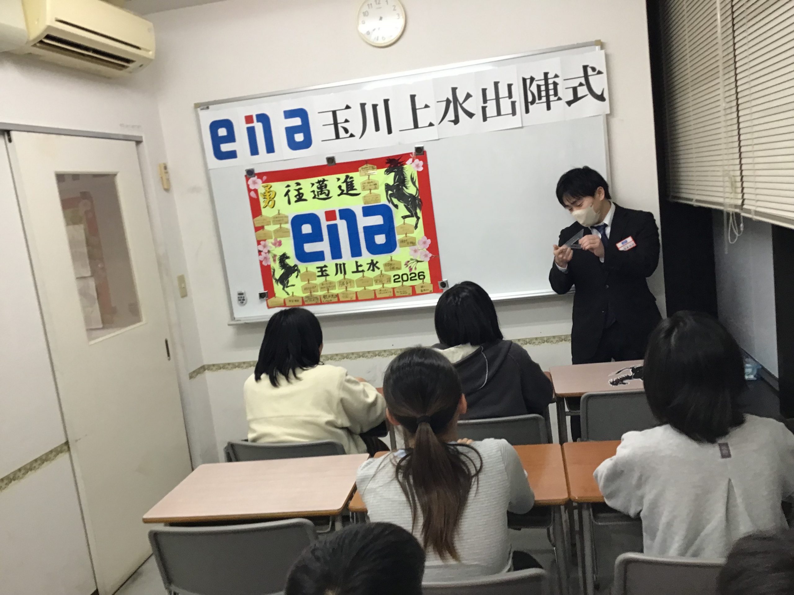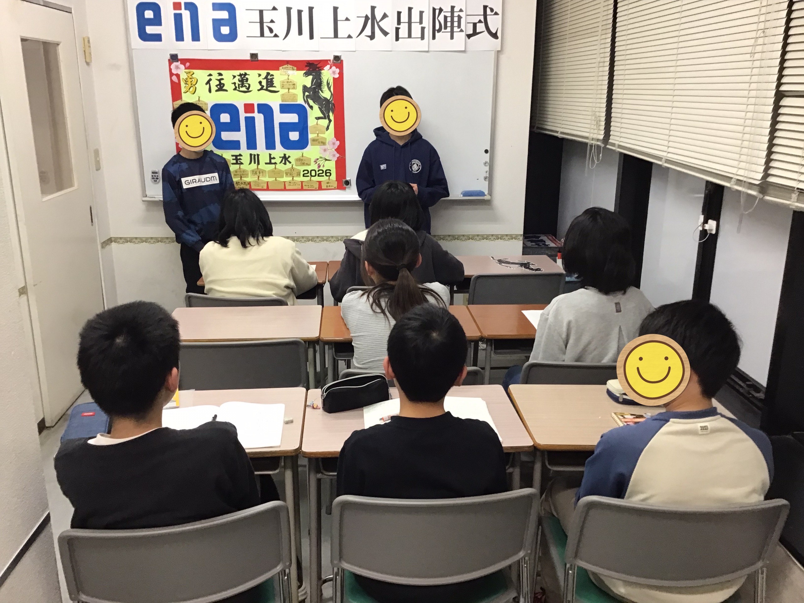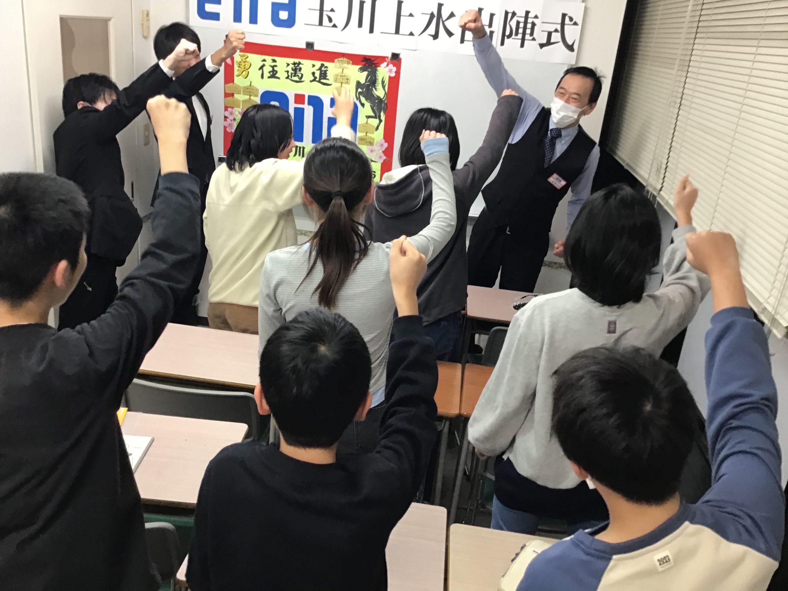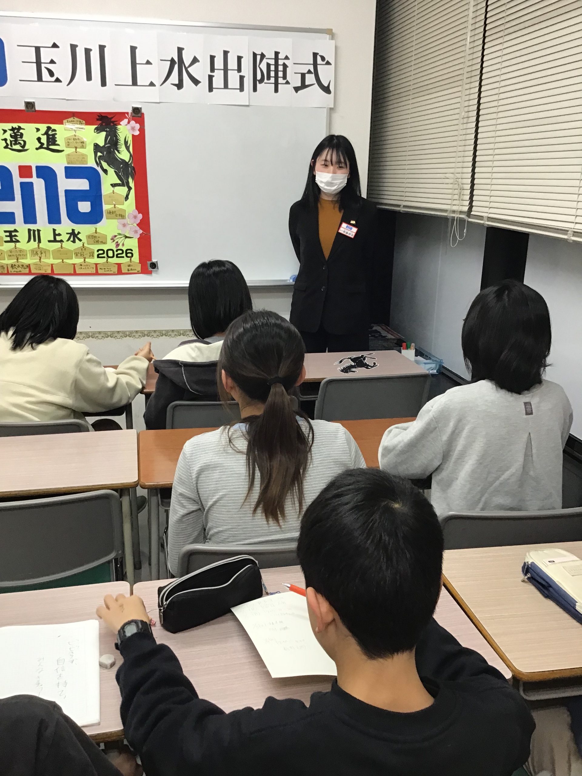 これまで長時間塾に送り出して頂き、お家では美味しいごはんを作って…と体調面でも精神面でも本当に多くのサポートをありがとうございました。保護者様の支えがあったからこそ今日の出陣式を迎えられているんだよ、受験を迎えられるんだよという話をさせていただきました。なかなか言葉にして感謝を伝えられる生徒はいないかもしれませんが間違いなく保護者様の支えが届いているはずです。精神的にも大人びている印象の今年の玉川上水の小6ですが、とはいってもやっぱり小6です。受験までは校舎スタッフとして厳しく指導をします。その分、受験が終わったら是非たくさん甘やかしてあげてください。何よりもうれしいのではないかと思います。
