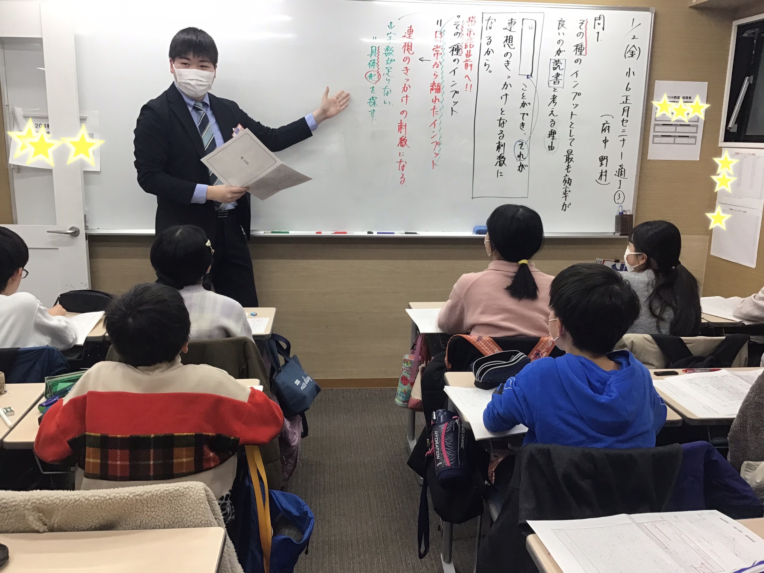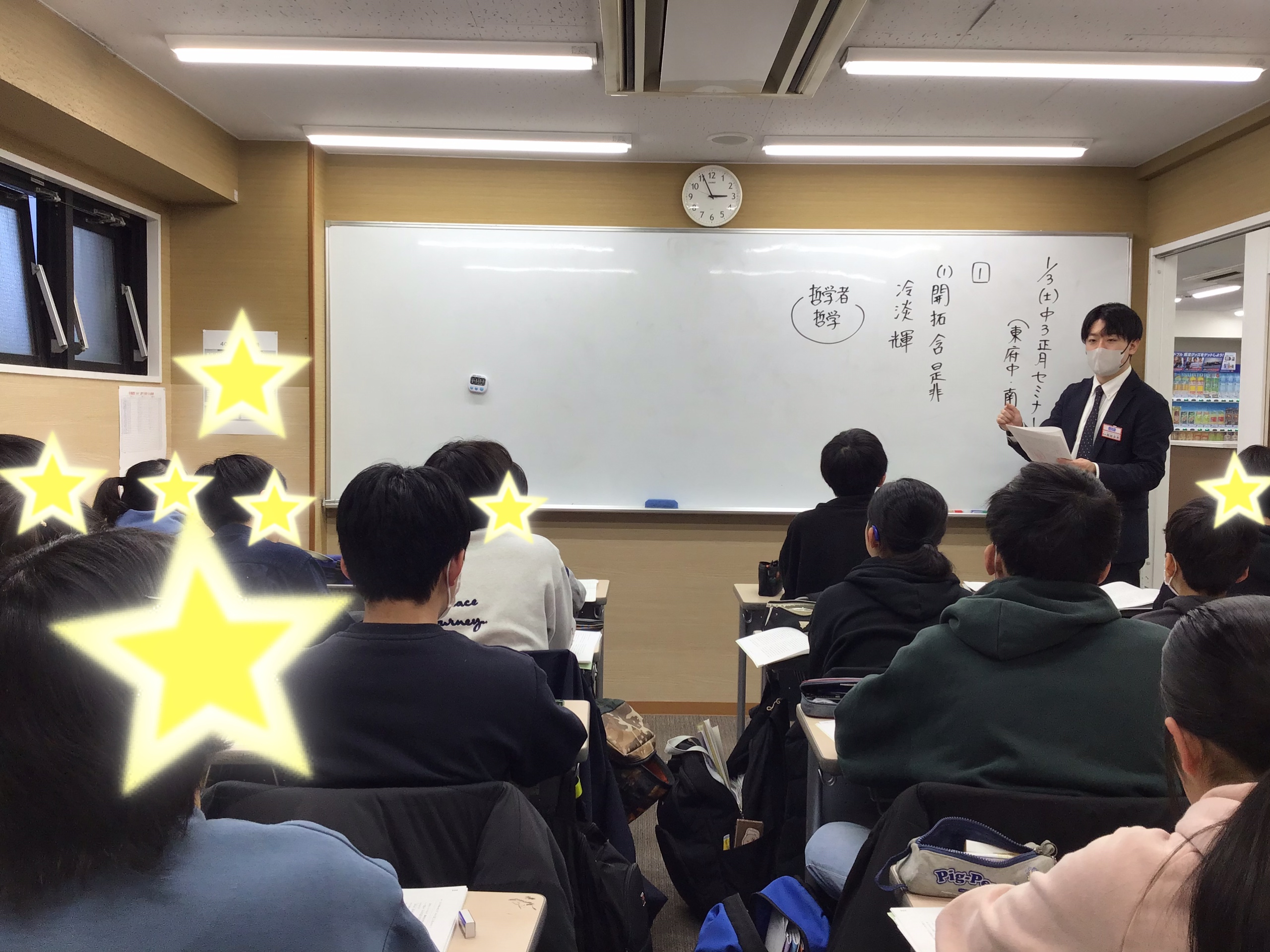 小6セミナーに参加した野村先生、同じく調布で頑張った中3生。中3セミナーで頑張った岩城先生の様子をお届けします!