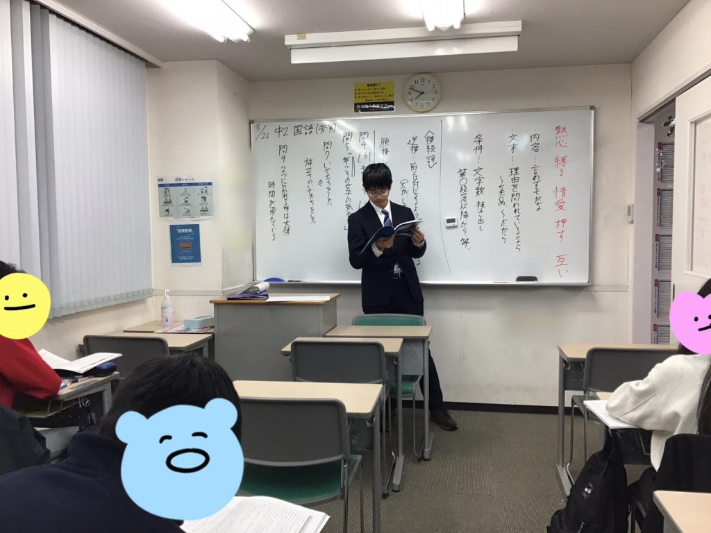3月中は小学5年生、6年生、中学1年生から3年生の授業があります。