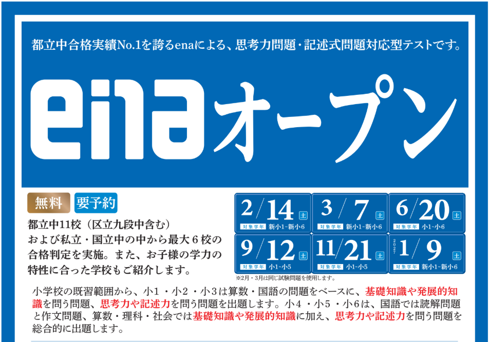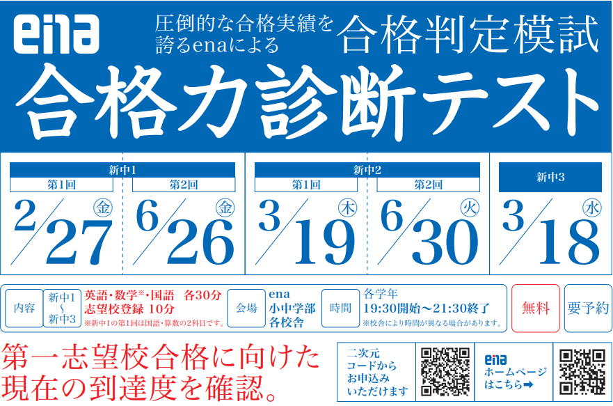 enaでは対象の学年であればどなたでも受験いただける模試を行っています