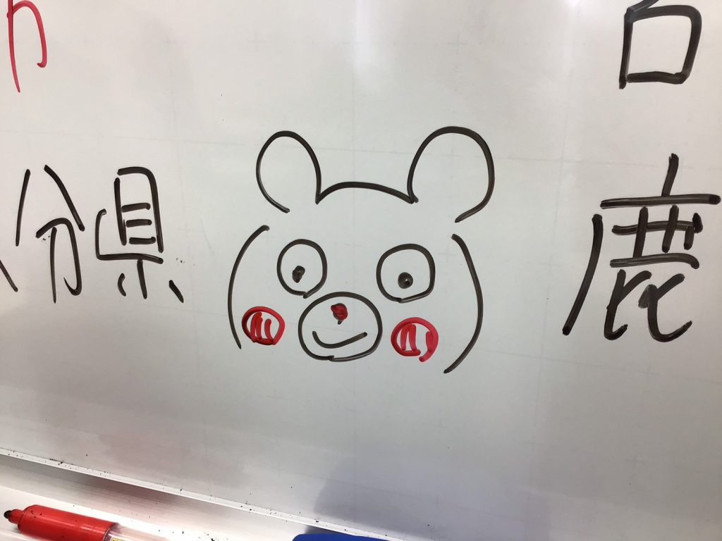△授業中に書いたキャラクターたち(左:くまモン・右:気孔)