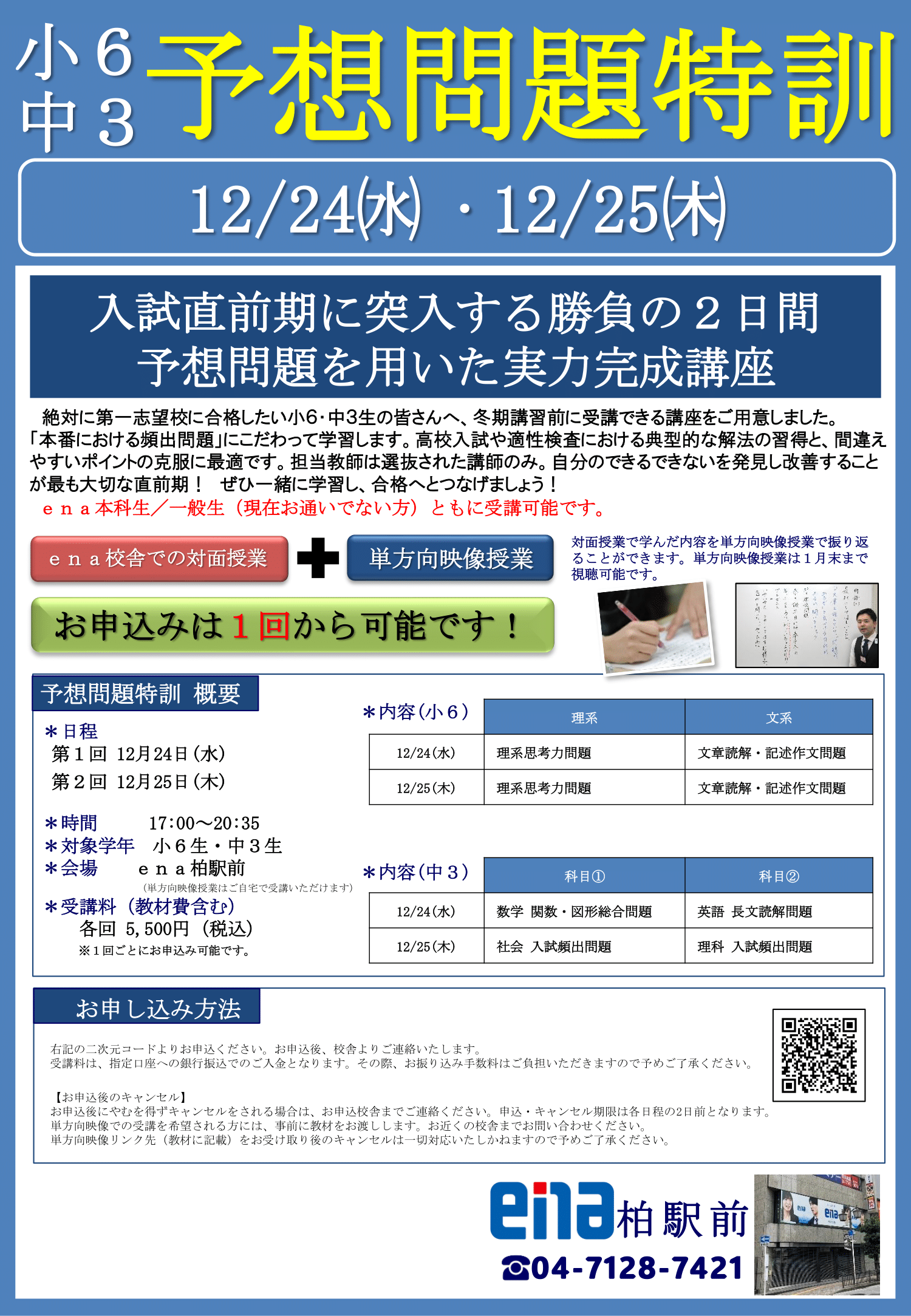 そこでenaでは、受験生の合格を後押しするため「予想問題特訓」を開催します!