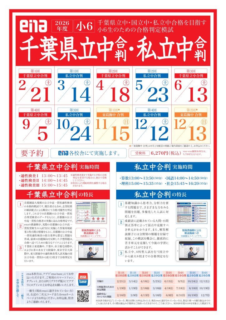 私立中学に向けた合格判定もenaは行っています。