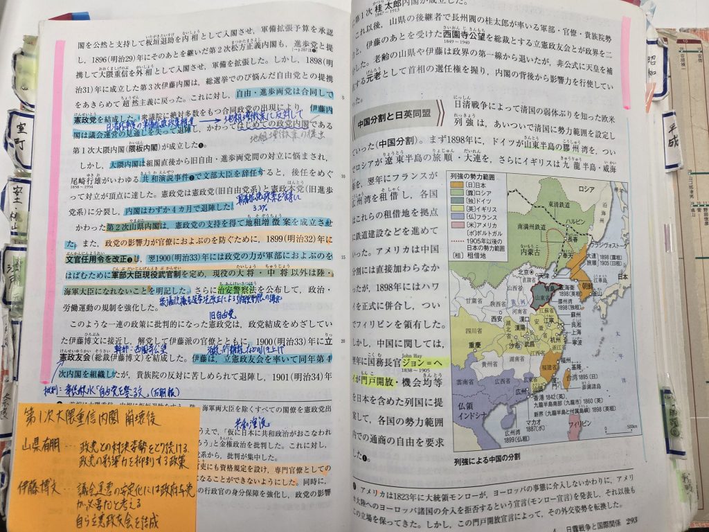写真は、私が問題演習を通して得た知識を書き込んでいた日本史の教科書です。
