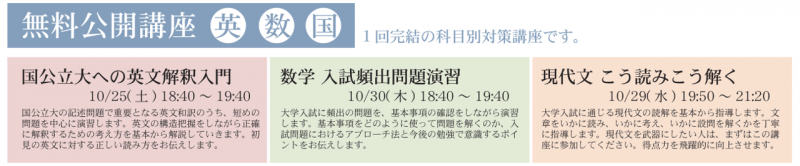 ②速習講座の10月実施分(10/22古文、10/31英語)