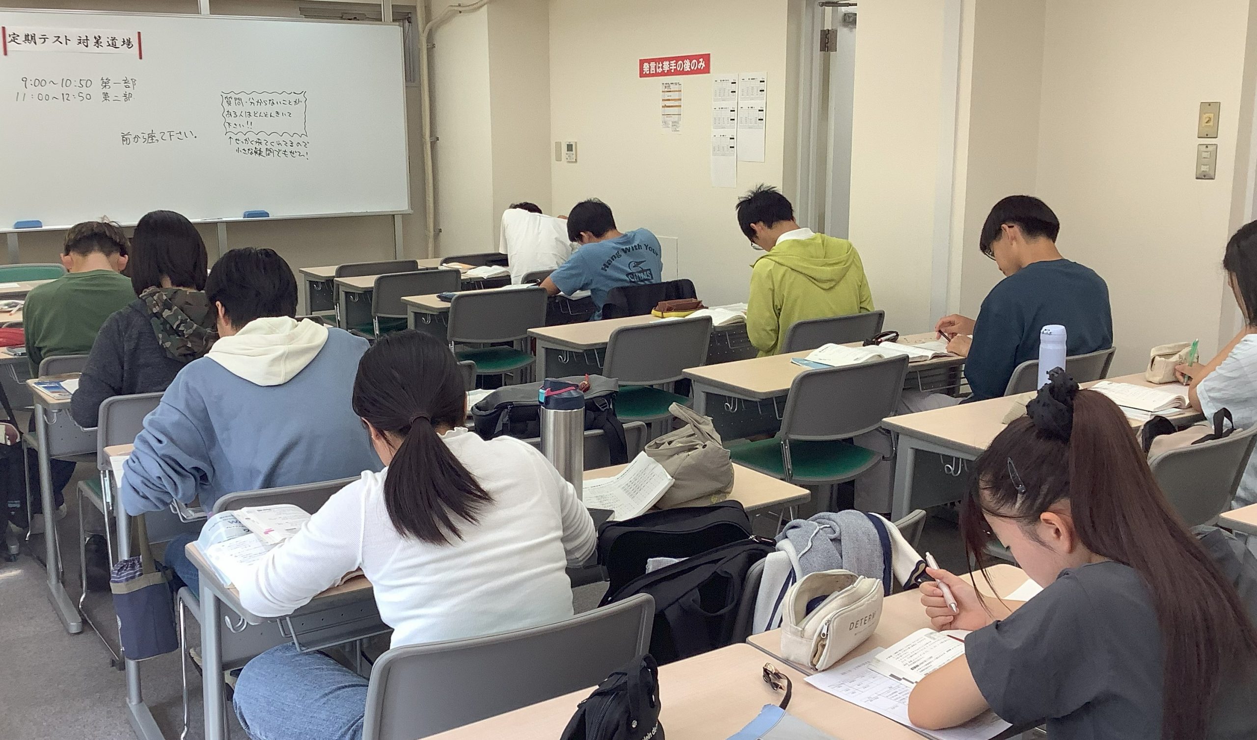 教室では、私語禁止を徹底し、質問は別の教室で受け付けました。