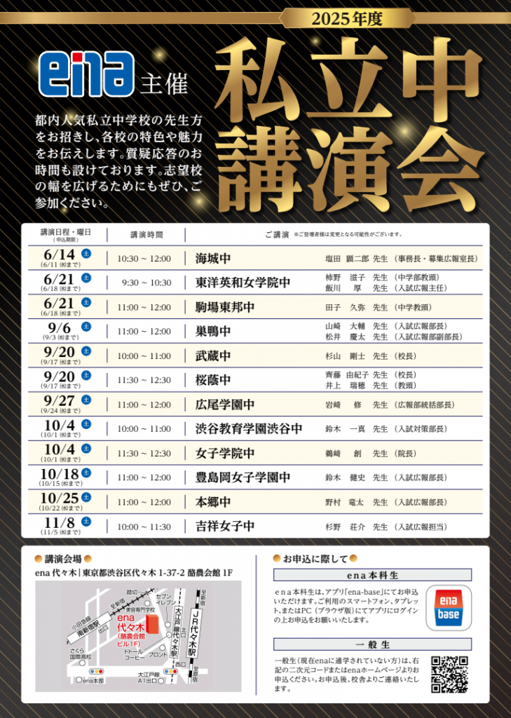9月20日は(土)はena代々木にて私立中講演会も実施いたします。