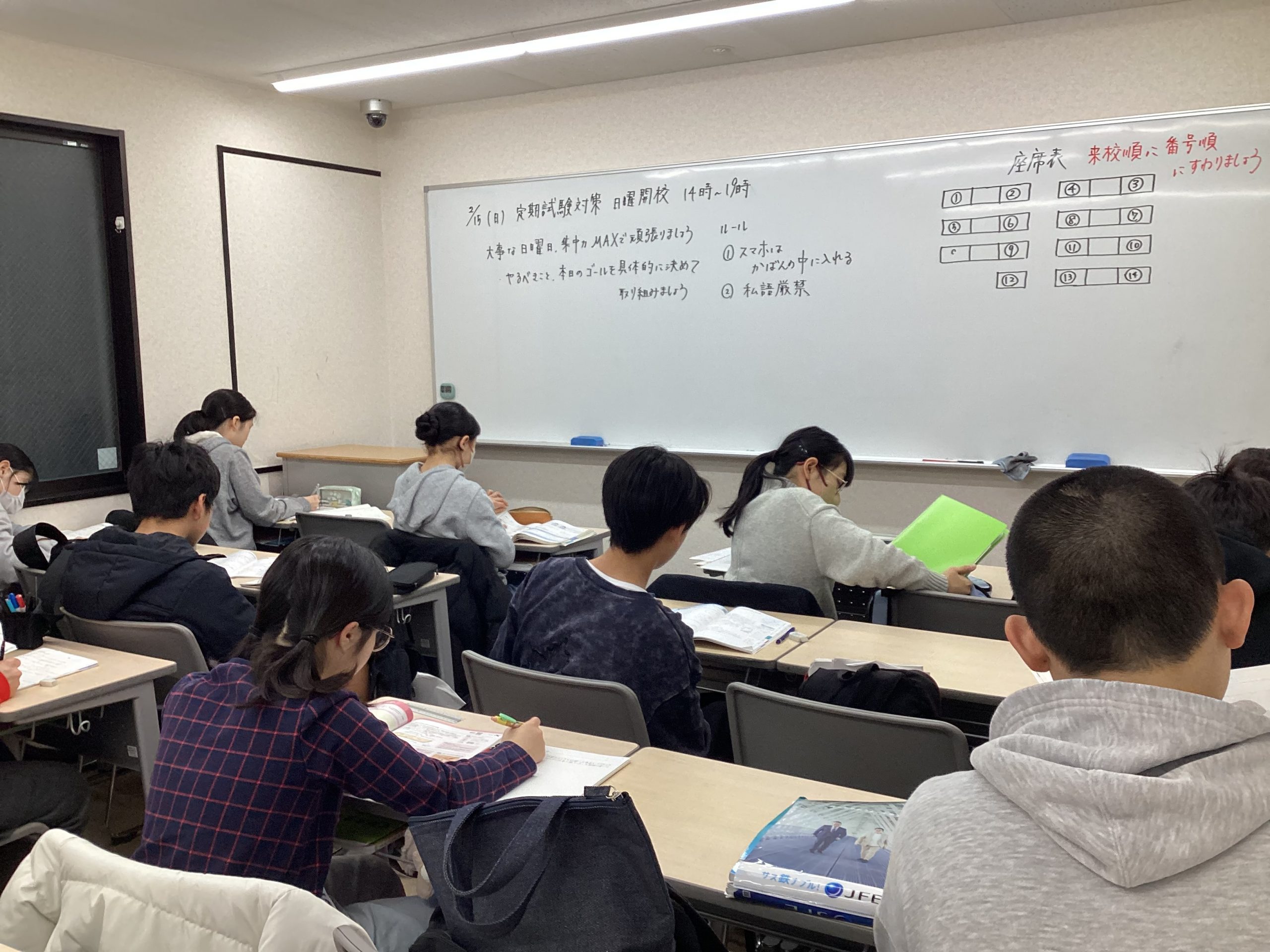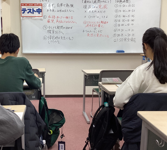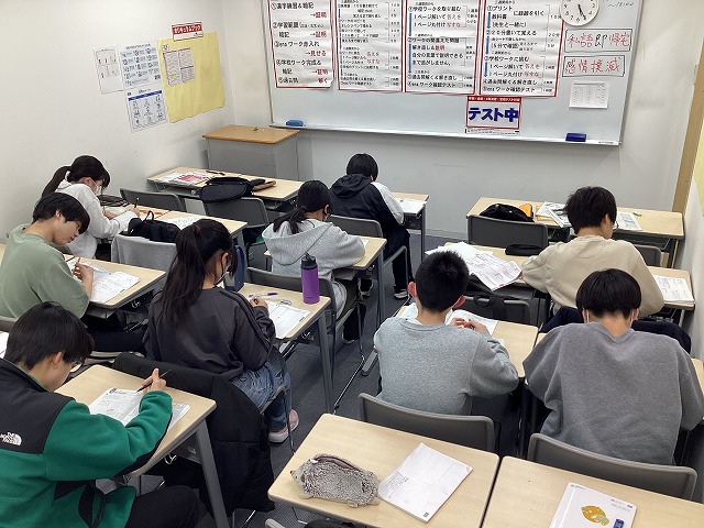 受験生の中3だけでなく、現中1、中2も学年末試験に向けて頑張っています。