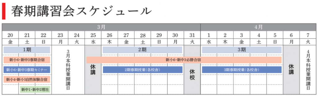 新中1、新中2、新中3のスタートの学習を春期講習会では受講することが