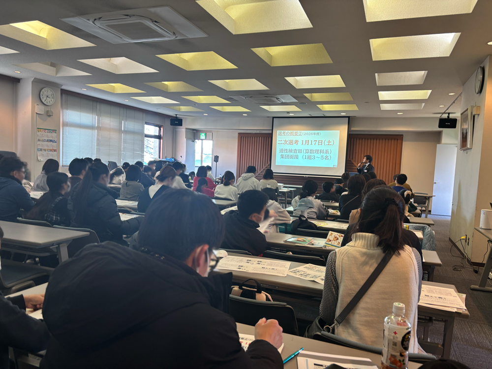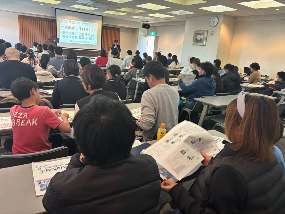 川口市立高附属中説明会開催 3/8(日)、川口市立高附属中の校長先生と教頭先生をお招きし、学校説明会を実施いたしました。会の後段ではenaによる入試報告会を行い、生徒保護者様あわせて70名以上にご参加いただきました。