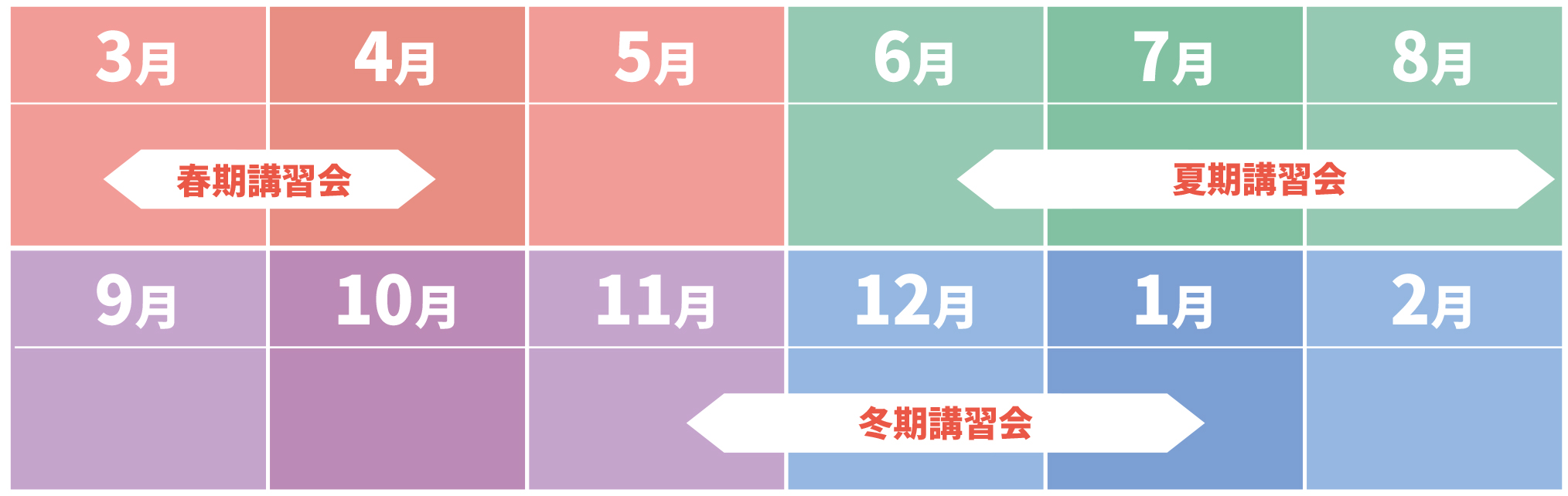 春期、夏期、冬期と年間3回の講習会をご用意しています。